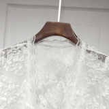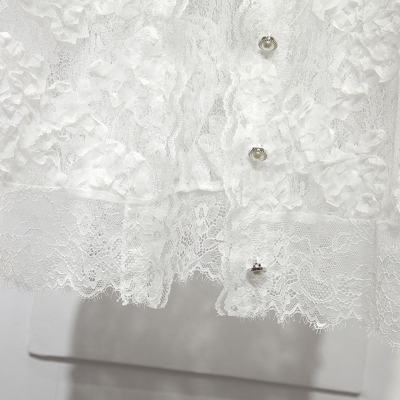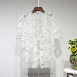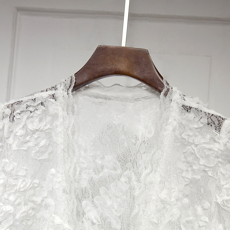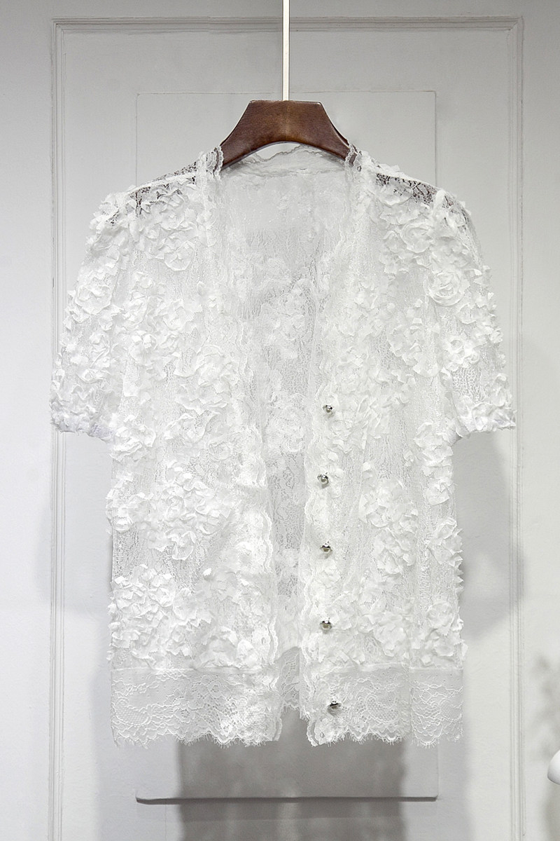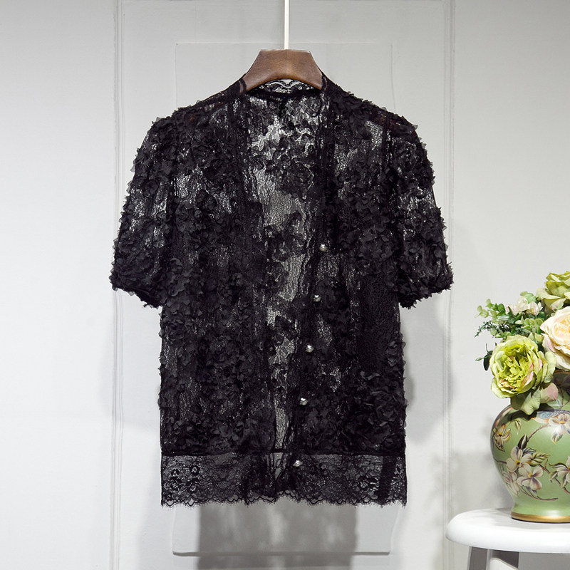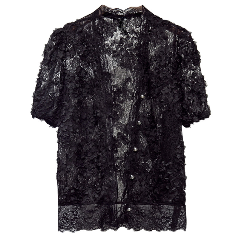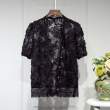 Трехмерный кружевной летний тонкий дизайнерский кардиган, в корейском стиле, короткий рукав, V-образный вырез, в цветочек, свободный крой, тренд сезона