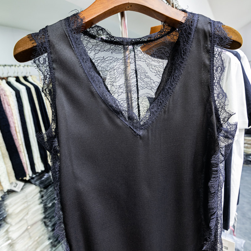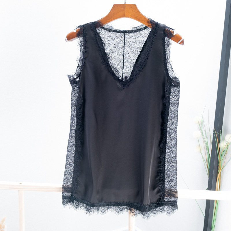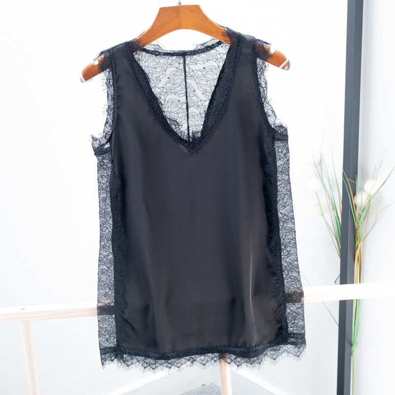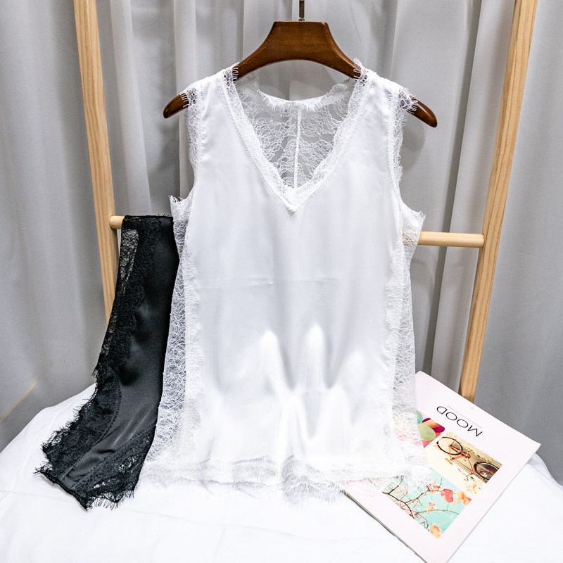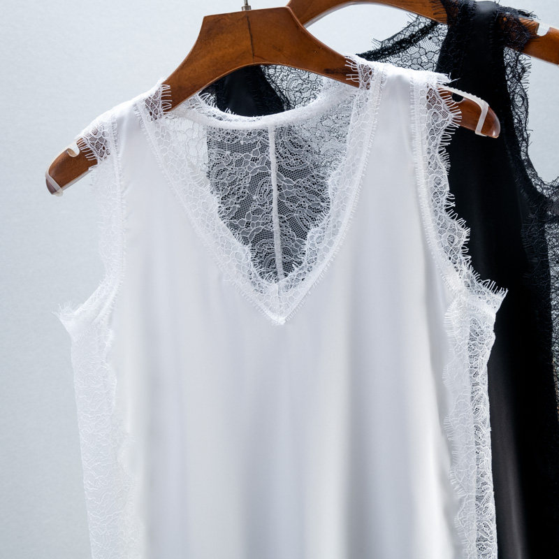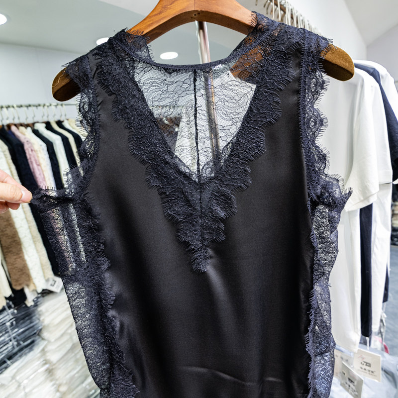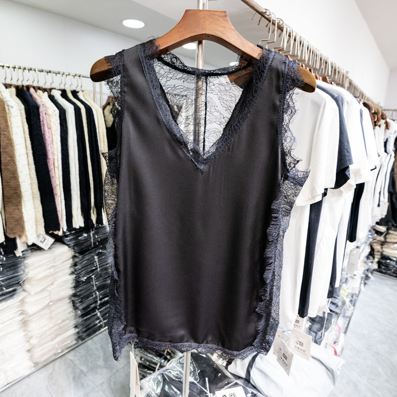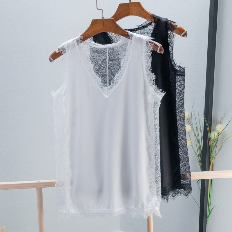 Кружевная майка, базовая футболка без рукавов, красивая спина, V-образный вырез, эффект подтяжки, популярно в интернете, свободный крой