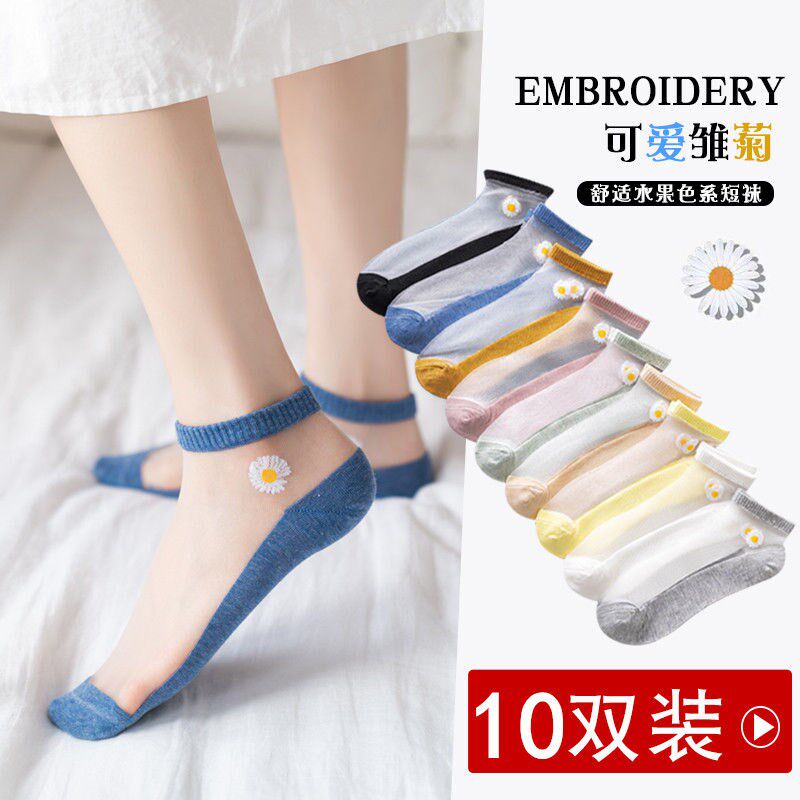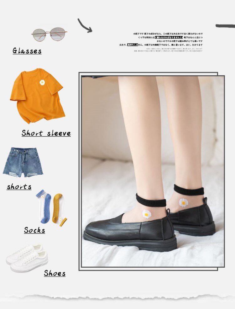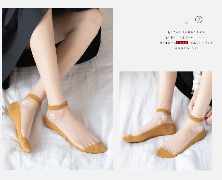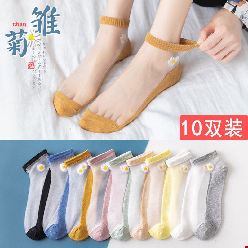 Модные стеклянные носки для школьников, в корейском стиле, в цветочек