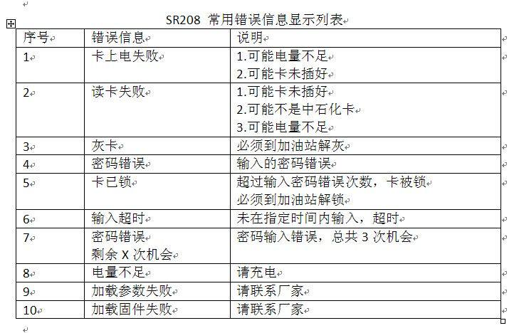 - В конце концов, эта таблица является общей таблицей функций маркировки и методом обработки для некоторых считывателей карт Sinopec SR208.СущностьВ основном, чтобы облегчить использование покупателей.Сущность