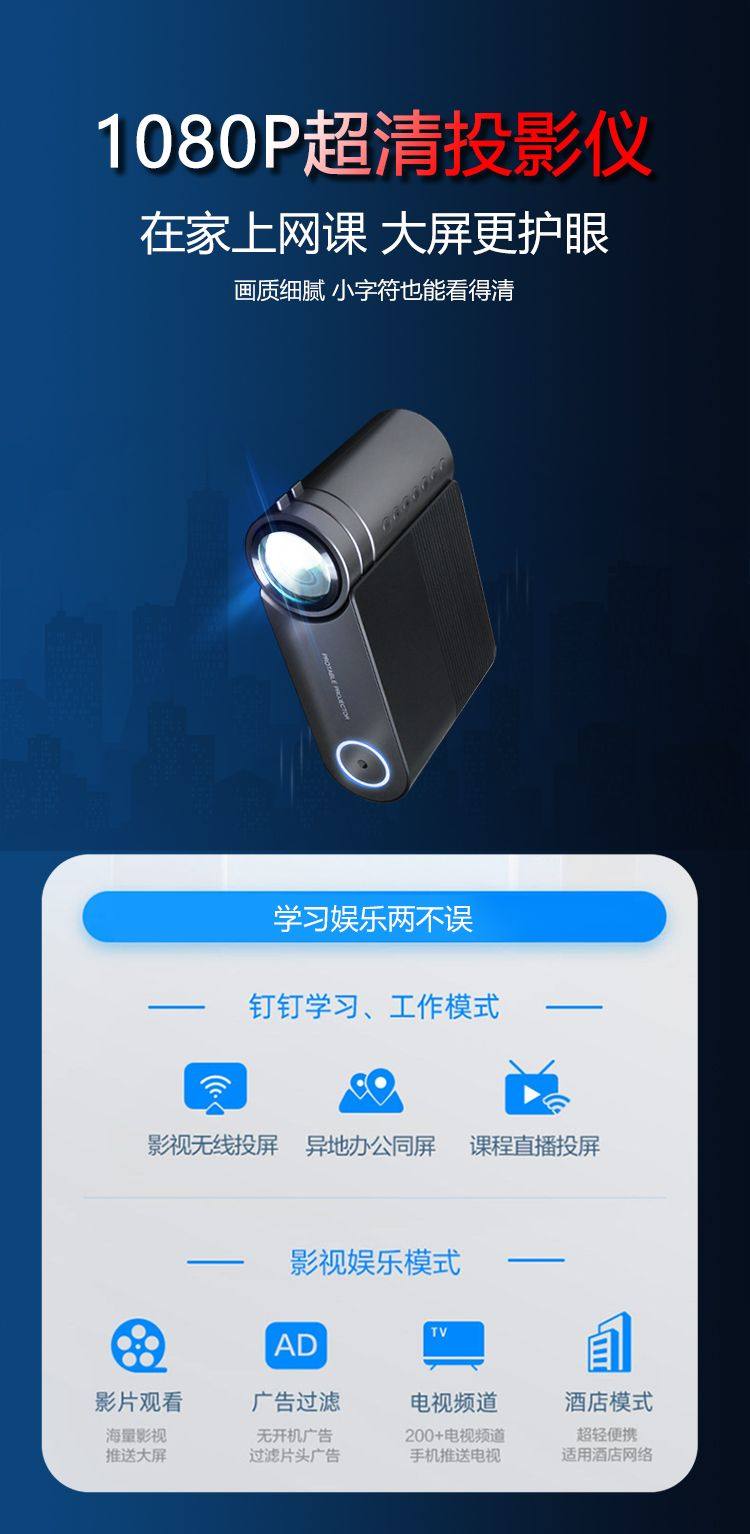 Ding Ding.com Projector Home Mobile Phone Wall Investment Wireless Wi -Fi Portable Office Training Ppt Projector