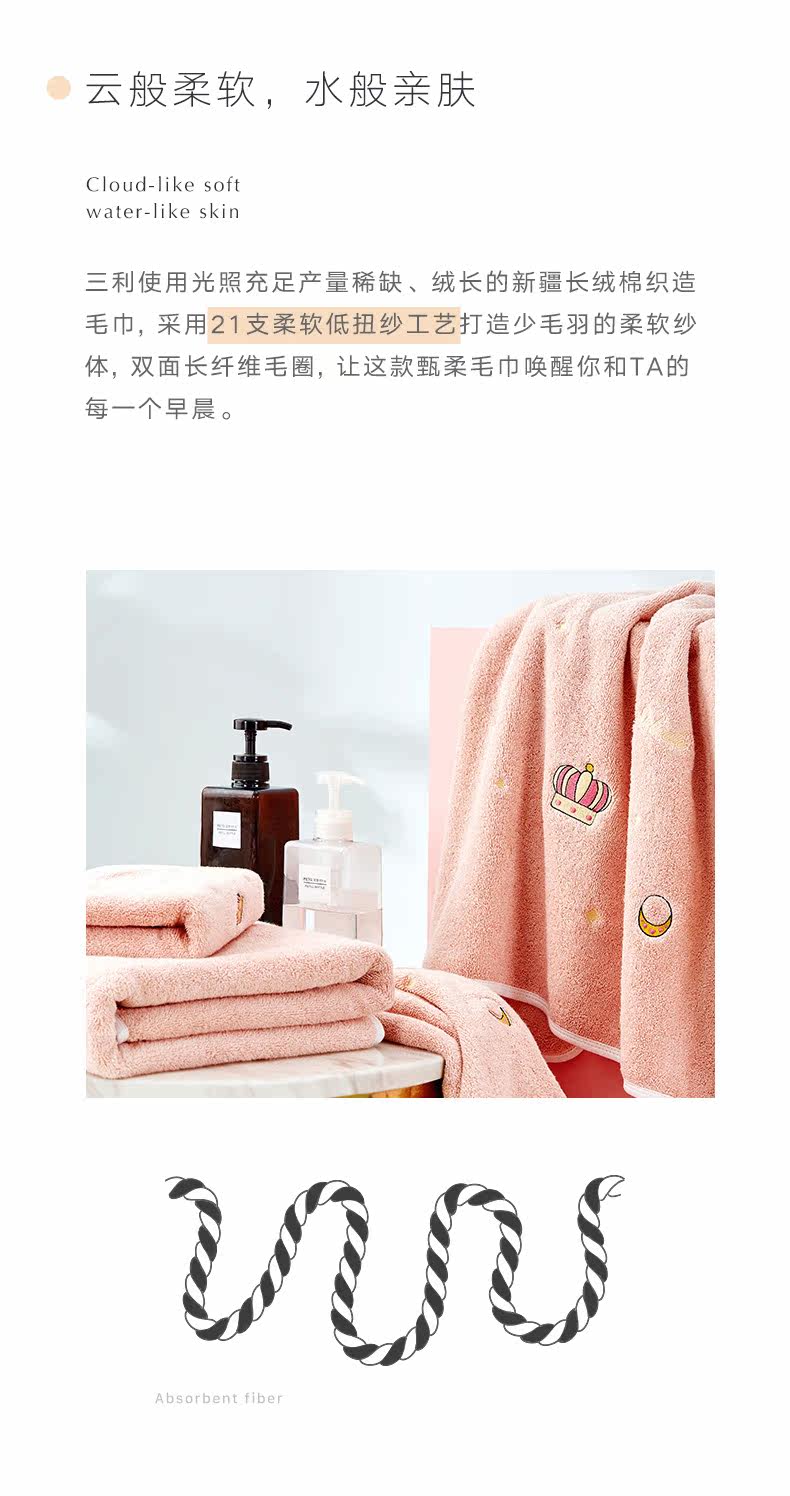 三利 Хлопковое мягкое полотенце, влажные салфетки для умывания подходит для мужчин и женщин, увеличенная толщина, хорошо впитывает воду, с вышивкой
