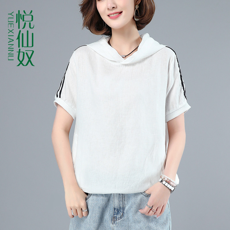 Летняя футболка с коротким рукавом с капюшоном, 2020 года, в корейском стиле, оверсайз, из хлопка и льна