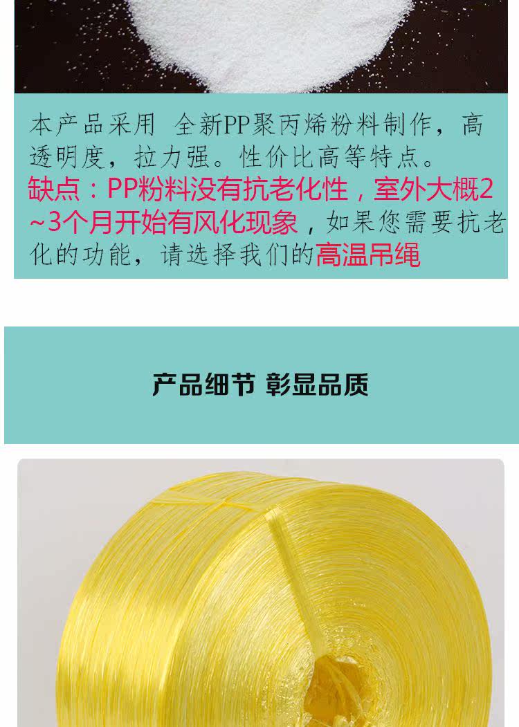 Новые ингредиенты PP веревка белая прозрачная пластиковая веревочная веревочная веревка веревки 2.0-2,5 см