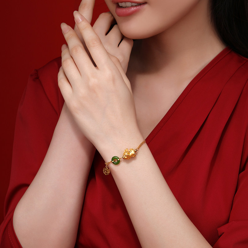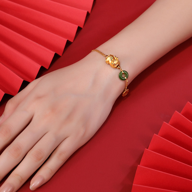 - Зеленый нефрит Хэтянь, вес золота около 4,8 г, длина цепочки около 16 см + хвостовая цепочка 2 см.