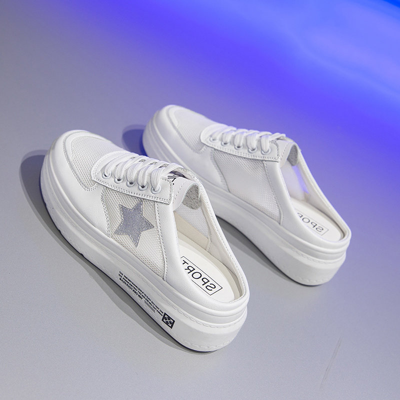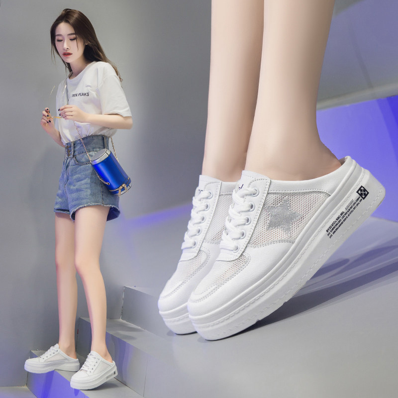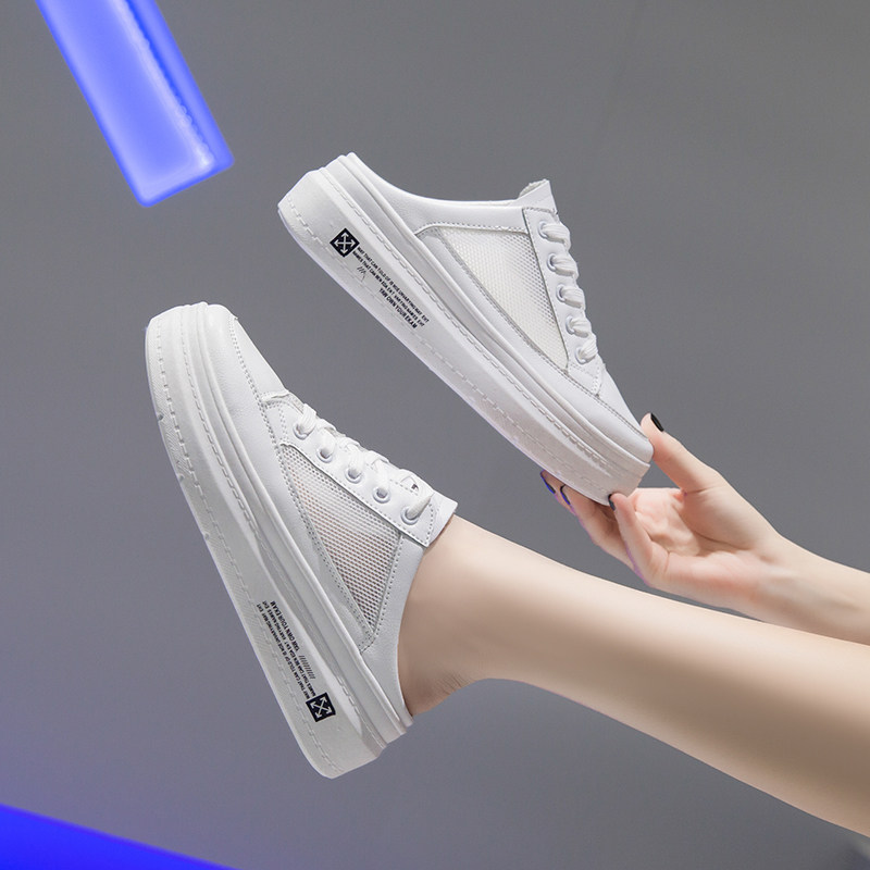 Женские полутапочки, увеличивающие внутреннюю часть, лето 2020, сетчатые дышащие полутапочки, женская обувь, белые туфли на толстой подошве на платформе без каблука