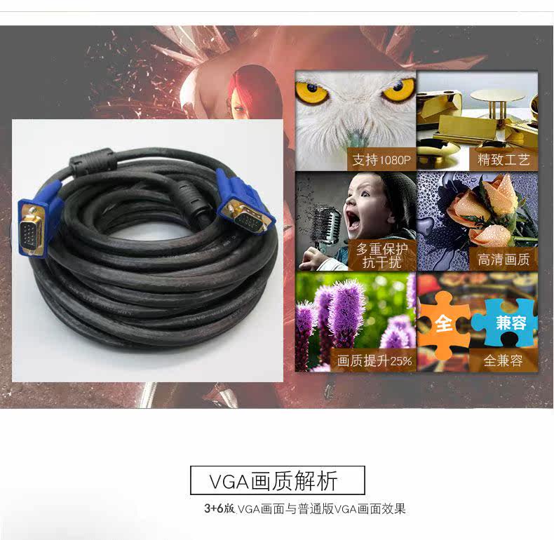 3+6-проводные кабели широко используются в подключении режима цифровой передачи VGA, подходящего для различных электронных и электрических оборудования D-Sub 15pin.