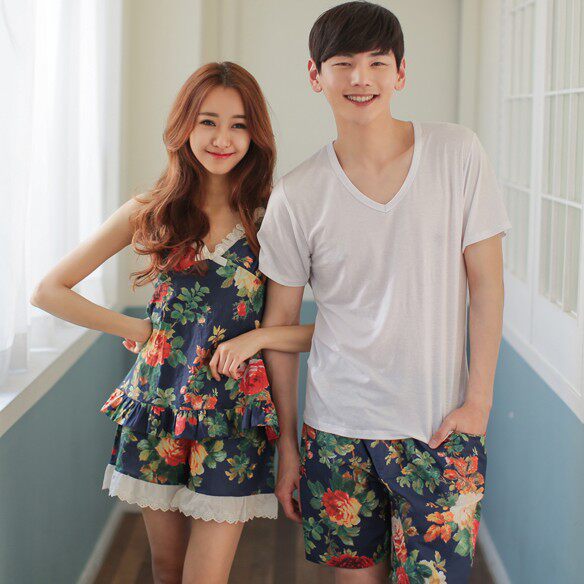 Тонкая пижама для влюбленных, мужской мультяшный комплект, в корейском стиле, короткий рукав, эффект подтяжки