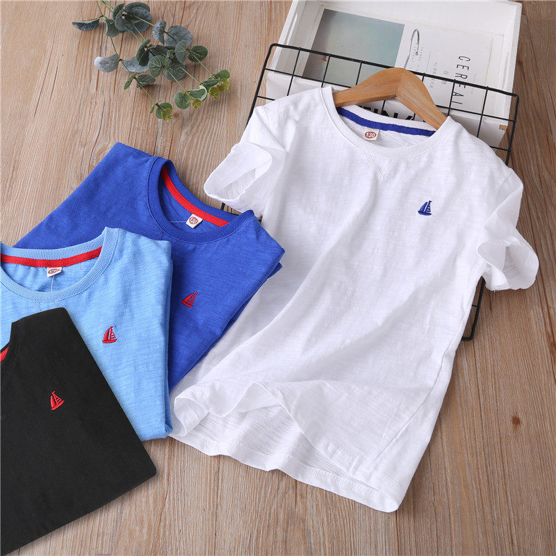 Детская летняя хлопковая базовая приятная телу футболка с коротким рукавом для мальчиков, 2020 года, в корейском стиле, в западном стиле