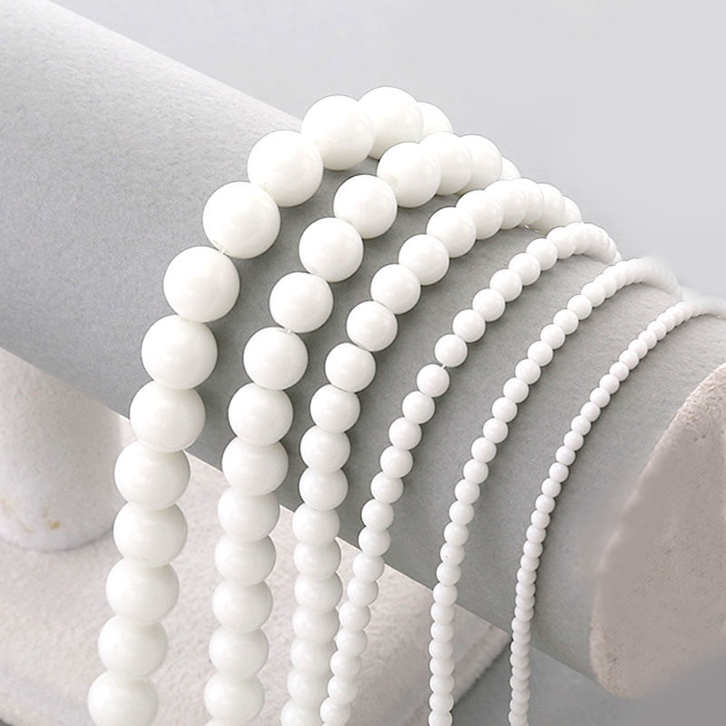 Название: стеклоБелые круглые бусины из искусственного фарфора