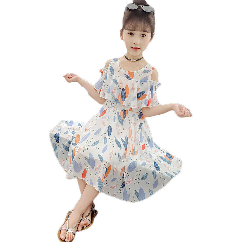 Летнее платье, юбка, летняя одежда, детский шифоновый наряд маленькой принцессы, 2020, в западном стиле, в корейском стиле, подходит для подростков, в цветочек