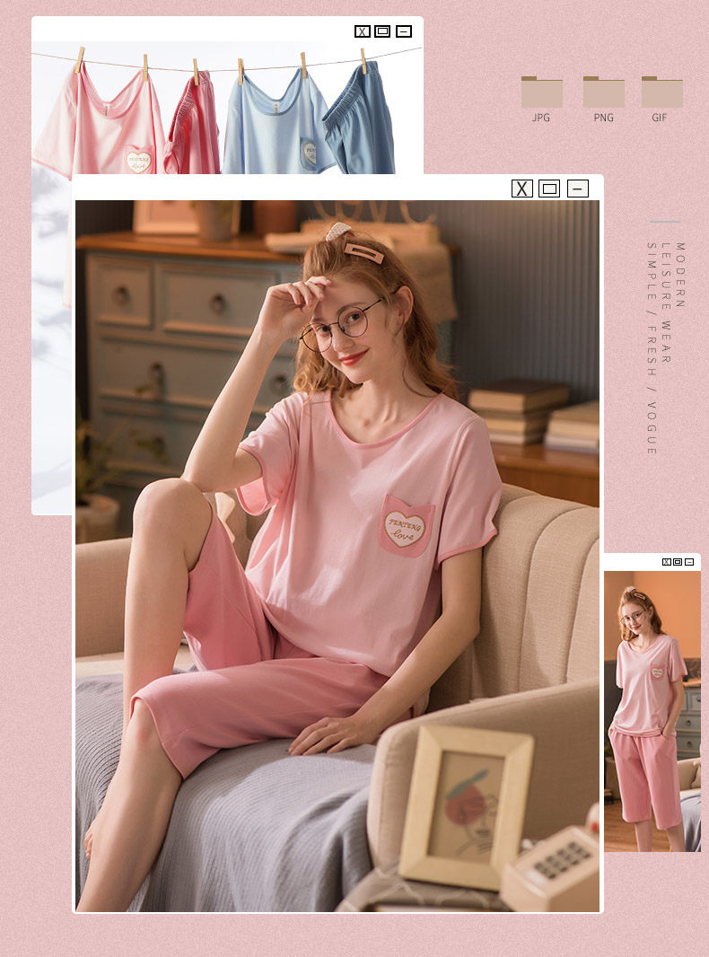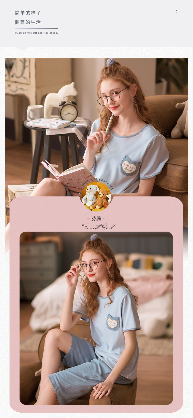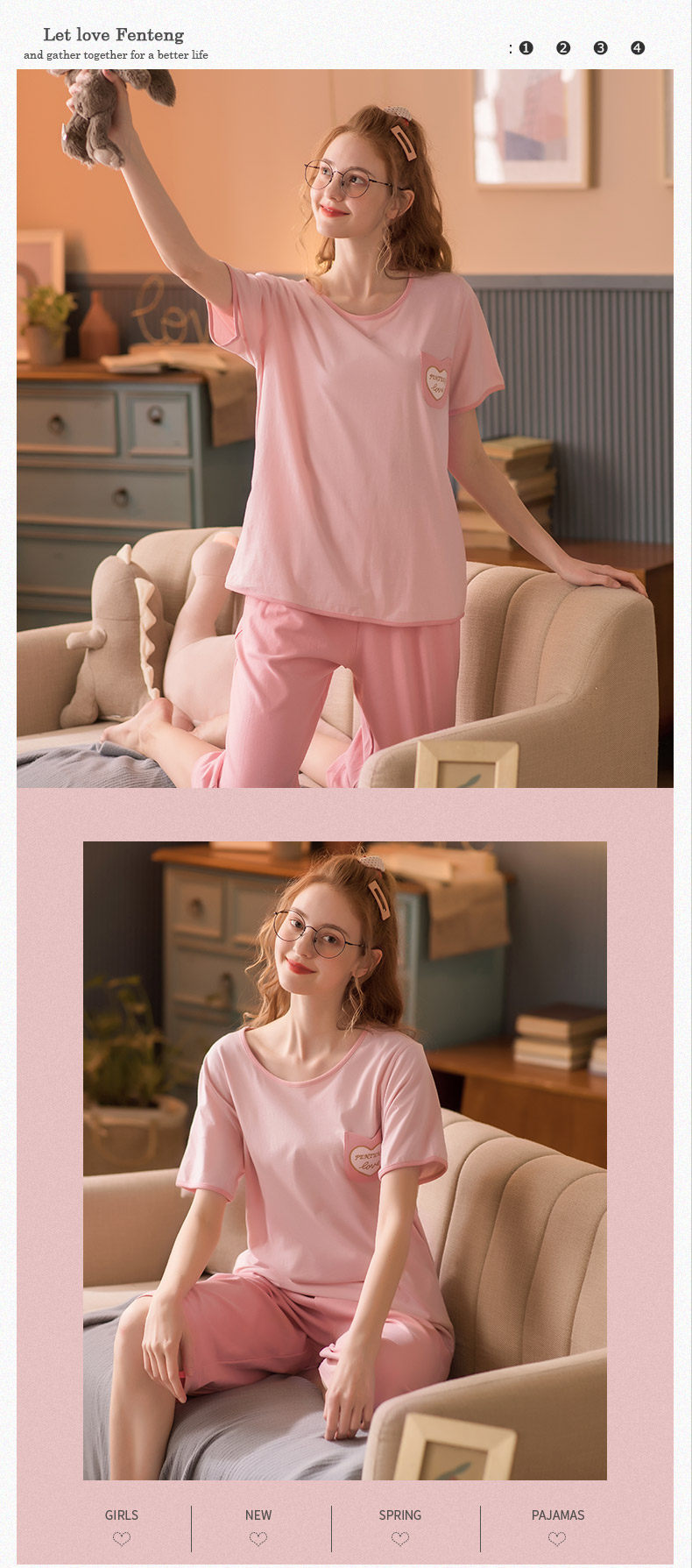 芬腾 Летняя тонкая пижама, хлопковый милый комплект для отдыха, в корейском стиле
