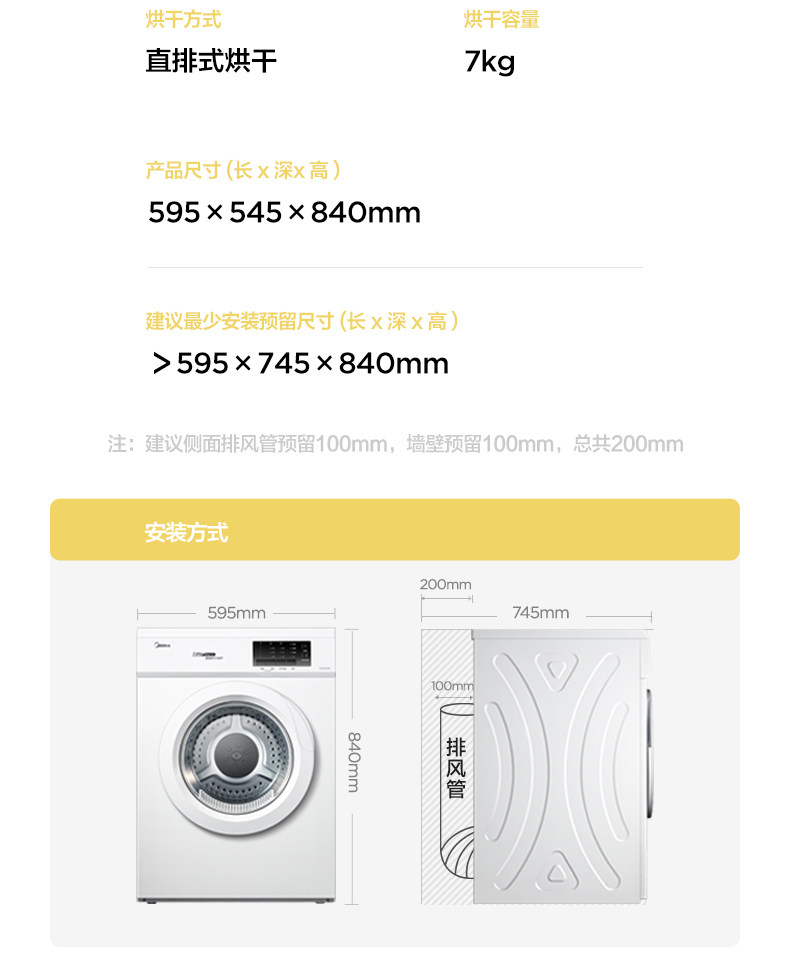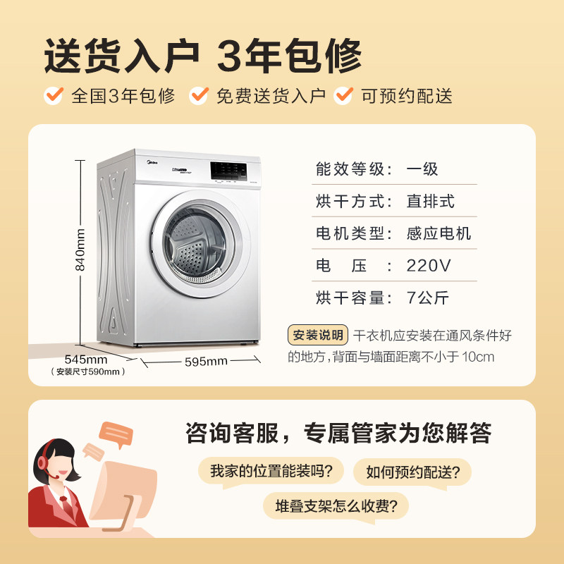 Midea 7 кг волокно трехмерная сушилка с прямой сушилкой