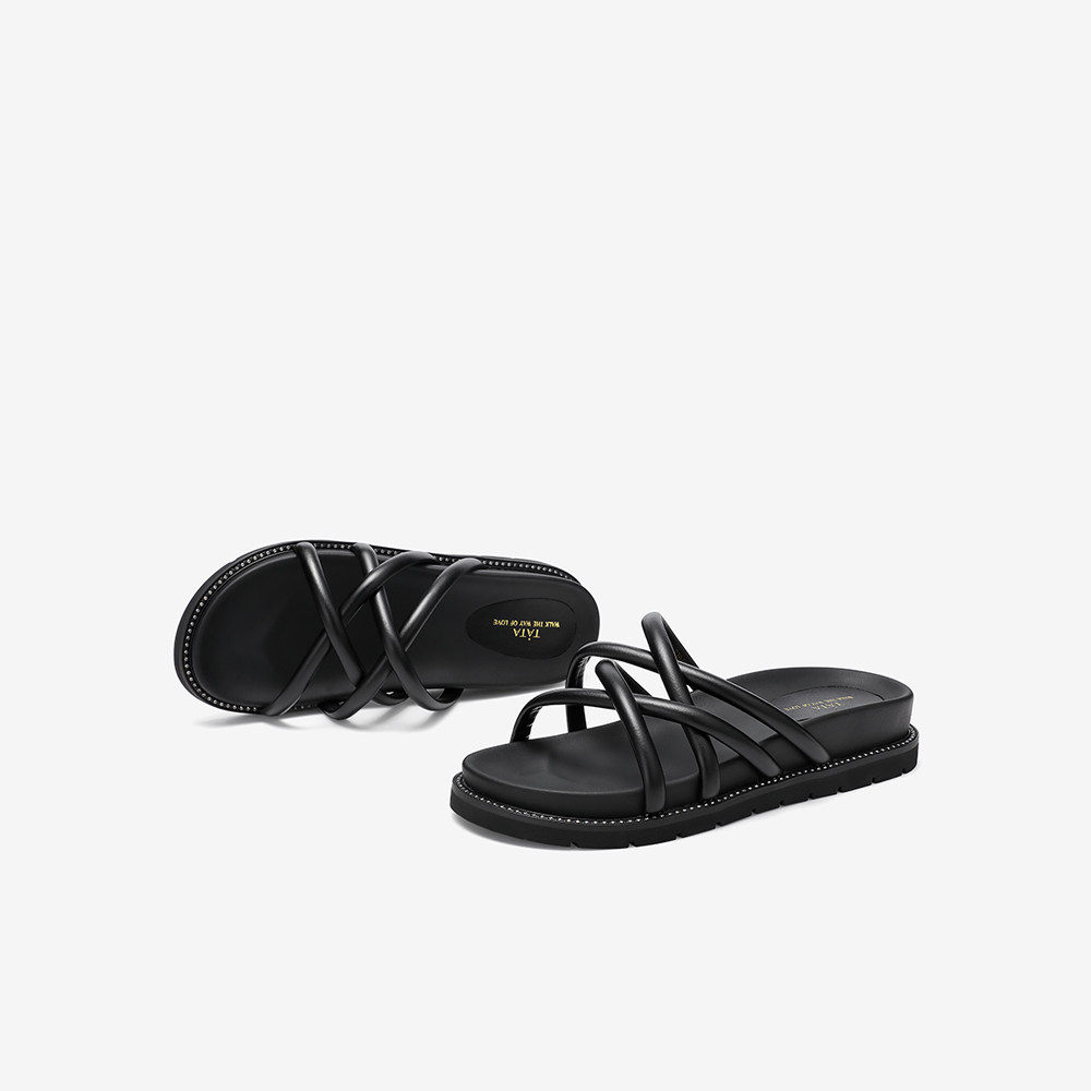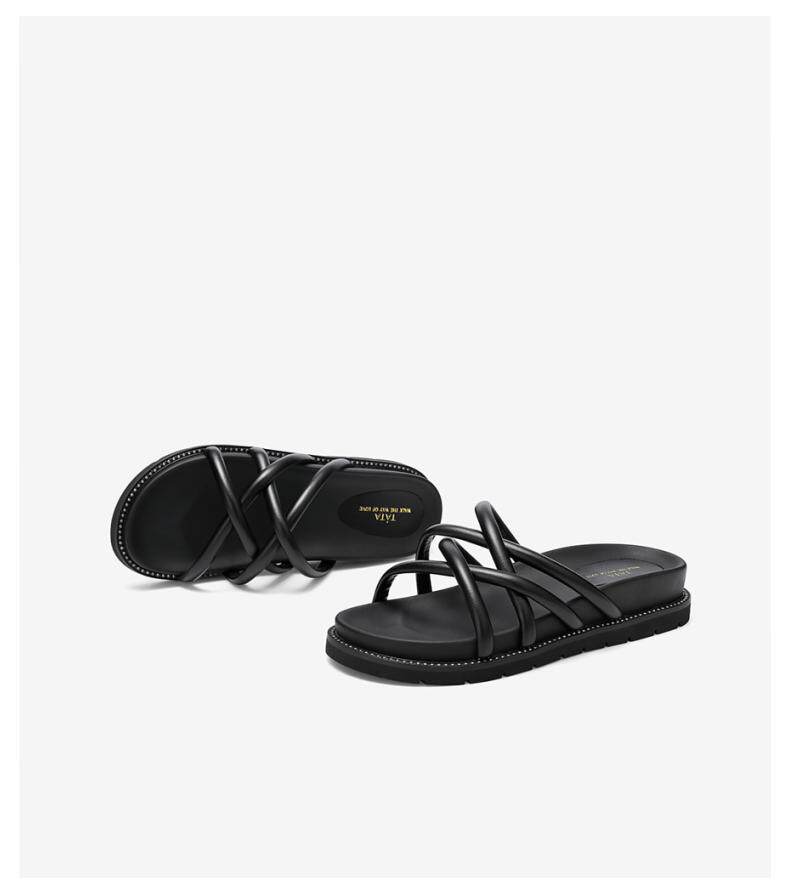 Tata/его летняя модная полоса модного талона 2020 года с склоном ног в женских песчаных тапочках Универсальные WQG01BT0