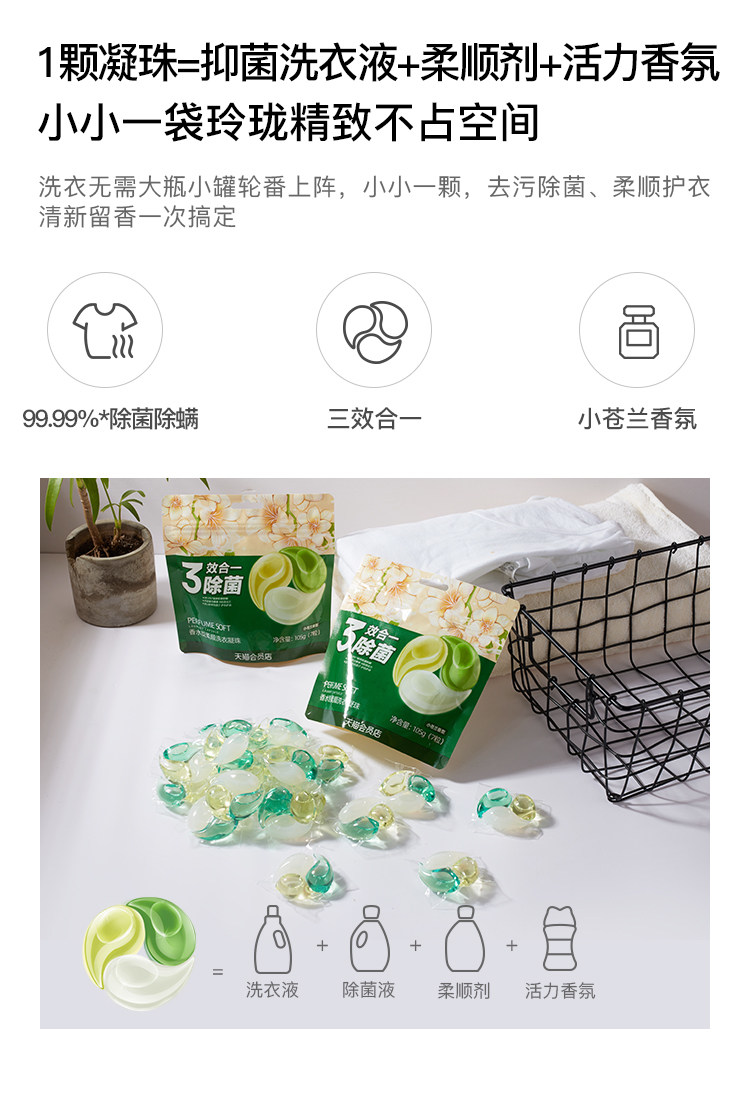 Капсулы для стирки, духи со стойким ароматом, кондиционер, 7 шт, долговременный эффект