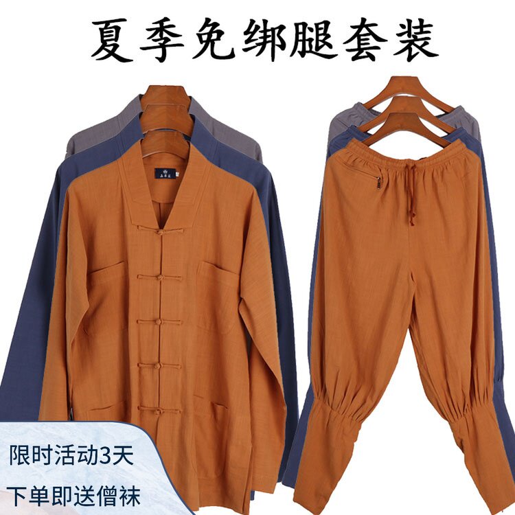 Монаховая одежда в летних коротких платьях, хлопка и конопля, мужская леггинсы, монашная одежда, платье Luohan, монахи Monk Monk Service