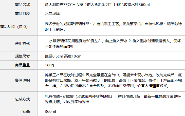 Итальянский импортный Zecchin Marano Mermaid Tears Series серия ручной стеклянной стеклянной стеклянной чашки с водой 360 мл