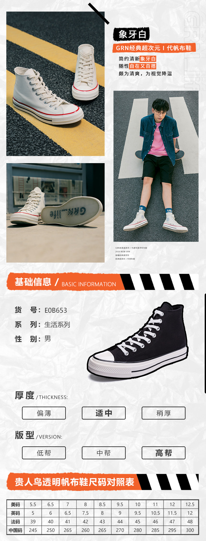 贵人鸟 Высокая тканевая летняя обувь, трендовые универсальные дышащие кроссовки для отдыха