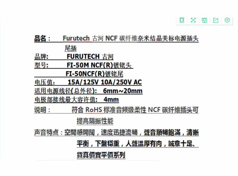 Японский Furutech опубликовал новую "Crystal Formula NANI"– Nano Crystal2 Формула (NCF) , 首先 上市 的 產品 有 Fi-50M NCF (R) 、 Fi-50 NCF (R) 電源 公母 插頭 、 gtx-d NCF (r) 電源 及 及 Fi-06 NCF (r ) Сиденье переменного тока.Нанометральная формула NCF представляет собой специальный кристаллический порошок, который имеет два активных атрибута.Прежде всего, NCF может генерировать отрицательные ионы для уменьшения статического электричества. Во -вторых, NCF может преобразовать тепловую энергию в дальние лучи, что делает его превосходной электроникой и механическим демпфирующим материалом. На последних шагах поглощение вибрации усиливается. Концепция. Сигнал передачи) был поднят в новую сферу.