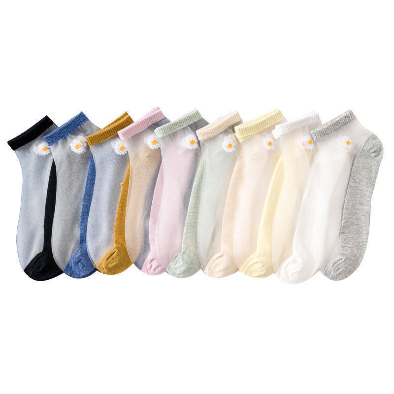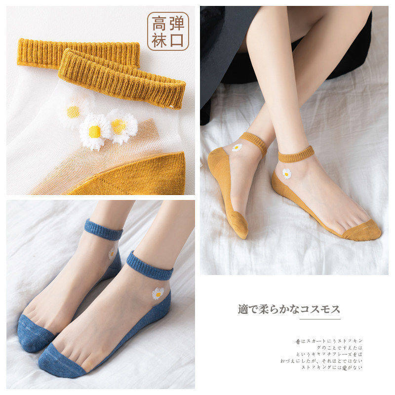 Женские корейские носки носки летние дно тонкие хрустальные носки легкие носки для судов, прозрачные невидимые носки, женские маленькие ромашки 30%