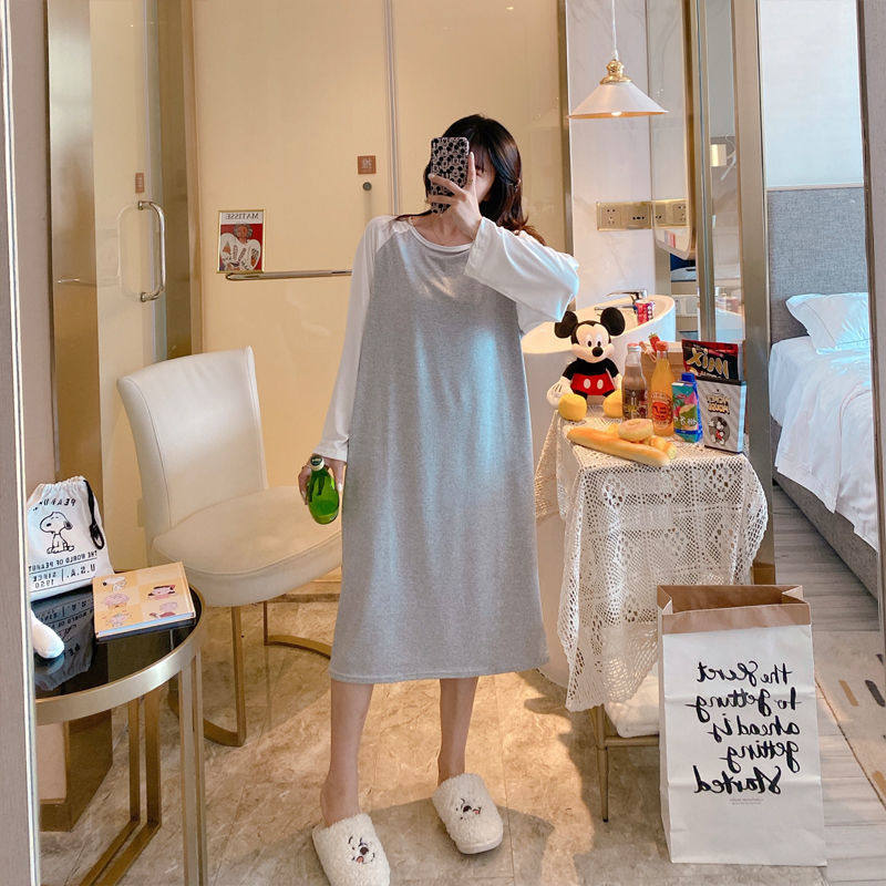 Осенняя пижама, демисезонный лонгслив, милая длинная юбка для школьников, в корейском стиле, большой размер, средней длины