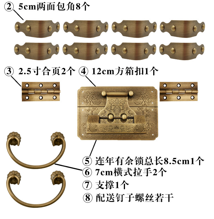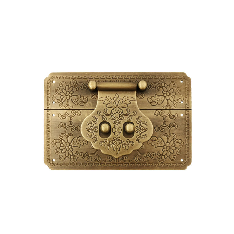 Медный антикварный замок, старомодная мебель, коробка