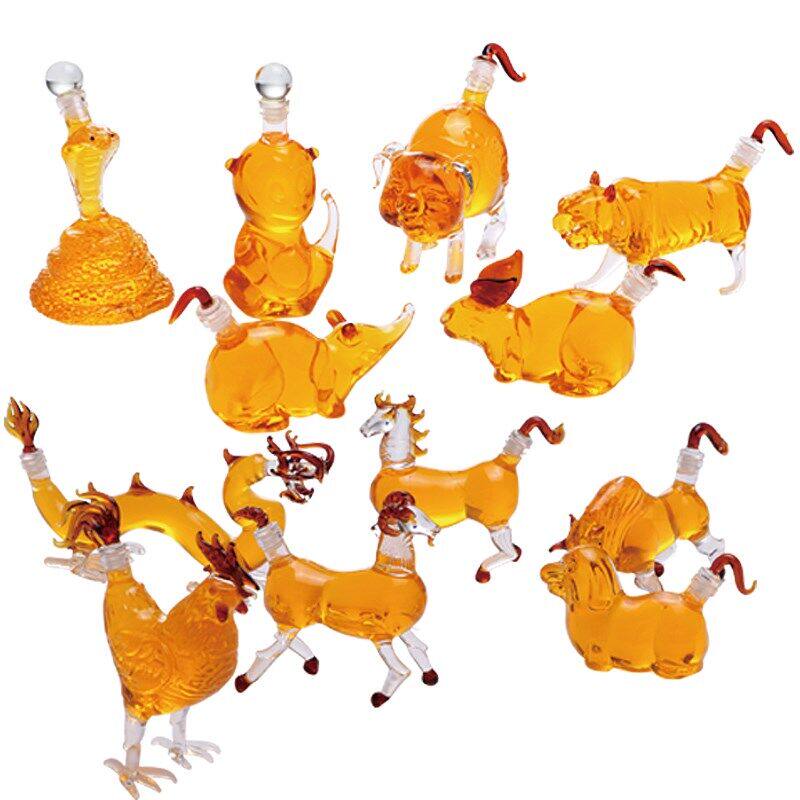 Креативная бутылка для вина, прозрачная стеклянная карманная фляжка с уплотнителем, китайский гороскоп