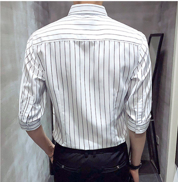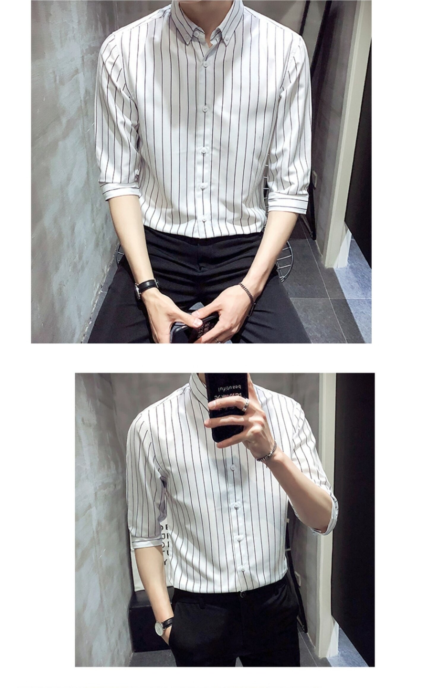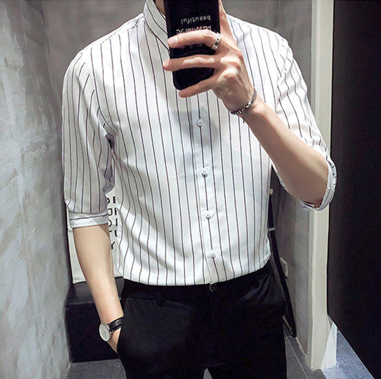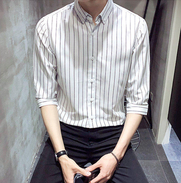 - Рубашка в широкую полоску с рукавами три четверти.