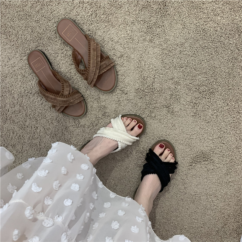 Слайдеры, модные плоские подошва тапочки, летняя обувь, универсальные пляжные сандалии на плоской подошве