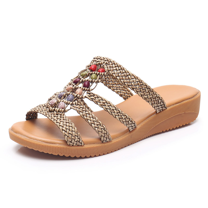 Летние плетеные тапочки, обувь, слайдеры для отдыха, 2022, мягкая подошва, стиль бохо, большой размер