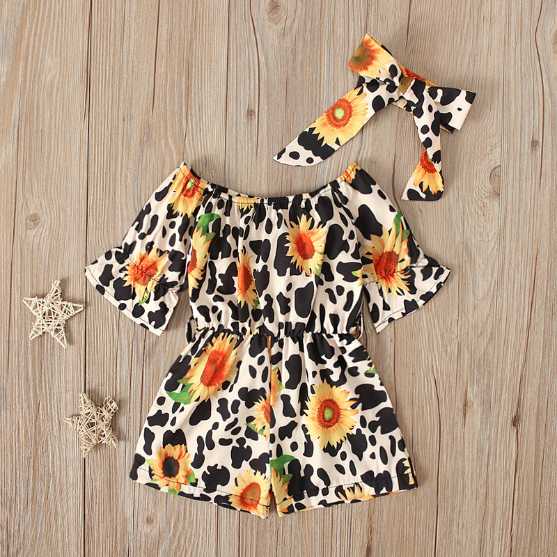 Детское летнее боди, комбинезон, брендовый комплект с бантиком, европейский стиль, цветочный принт, детская одежда