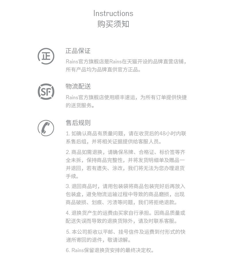 Продавец:Rains旗舰店
