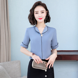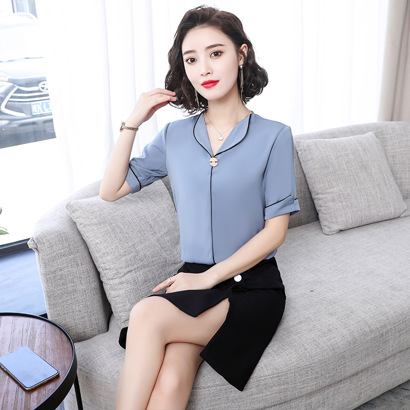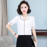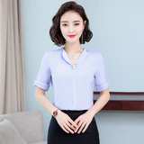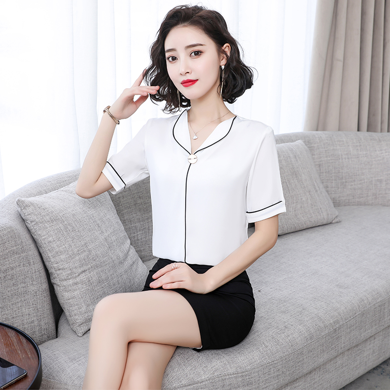 Шифоновая летняя рубашка для работы, короткий рукав, 2020 года, в корейском стиле, V-образный вырез
