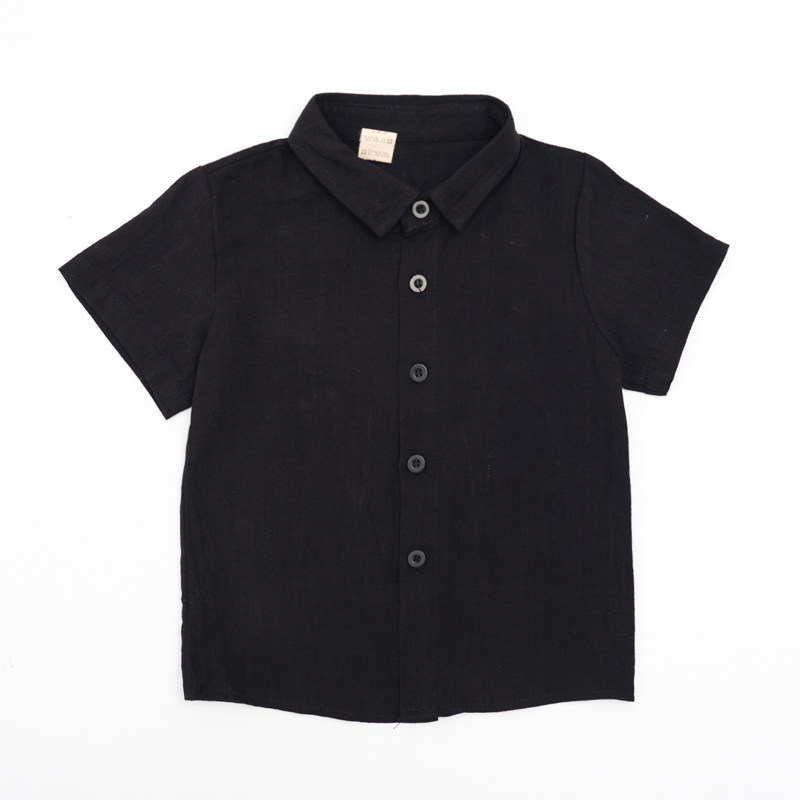Летняя детская однотонная базовая приятная телу рубашка для мальчиков, в корейском стиле, высокий воротник