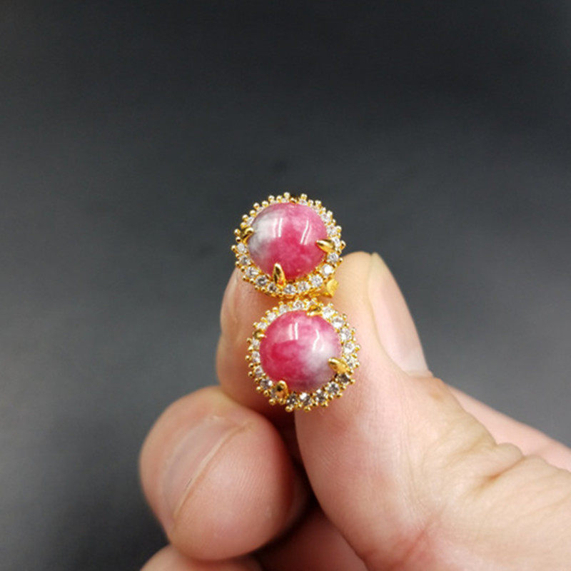 Ювелирное украшение из нефрита, природная руда, розовые серьги