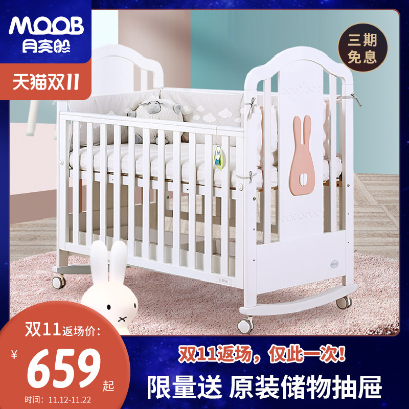 月亮船 Универсальная кроватка из натурального дерева, детская качалка для приставной кровати для новорожденных для ящиков