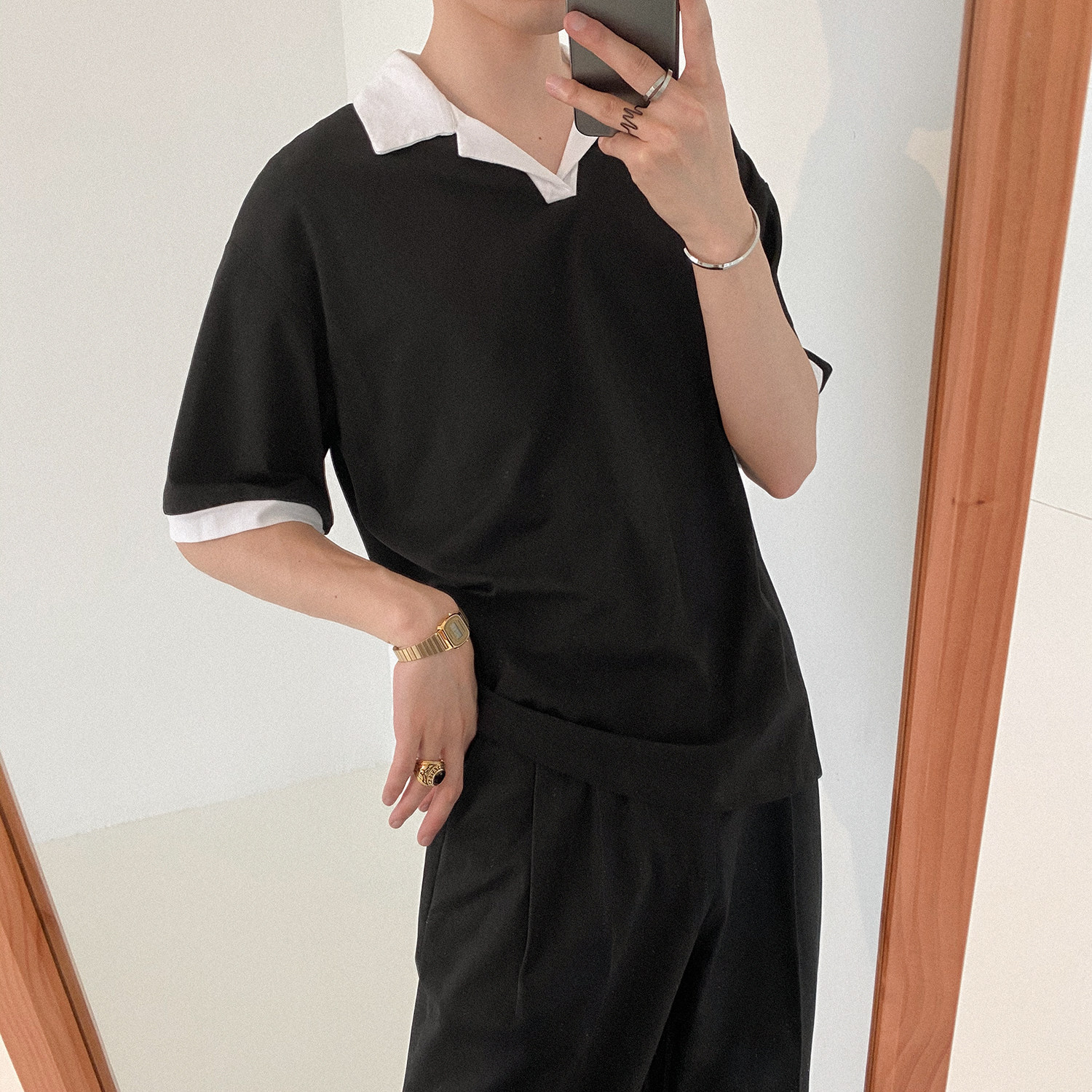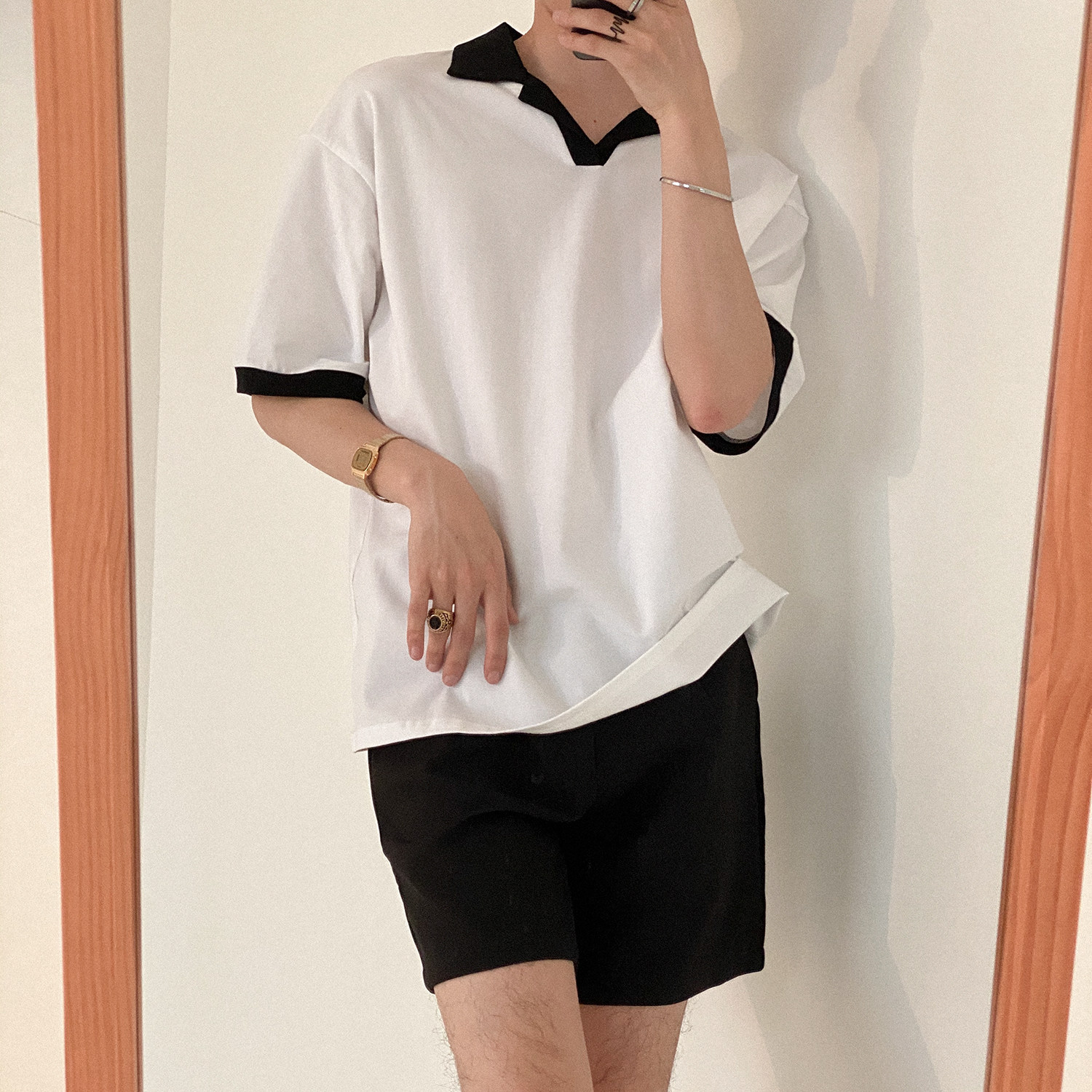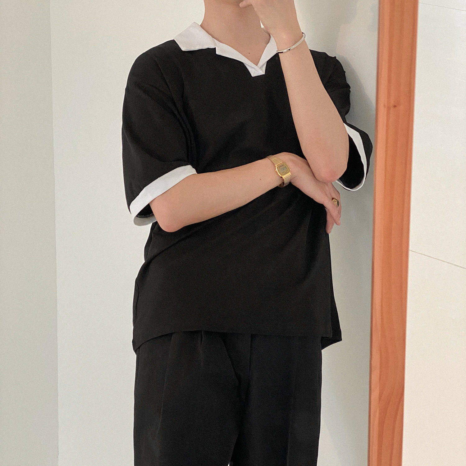 Летняя футболка polo, изысканная трендовая рубашка, короткий рукав, в корейском стиле