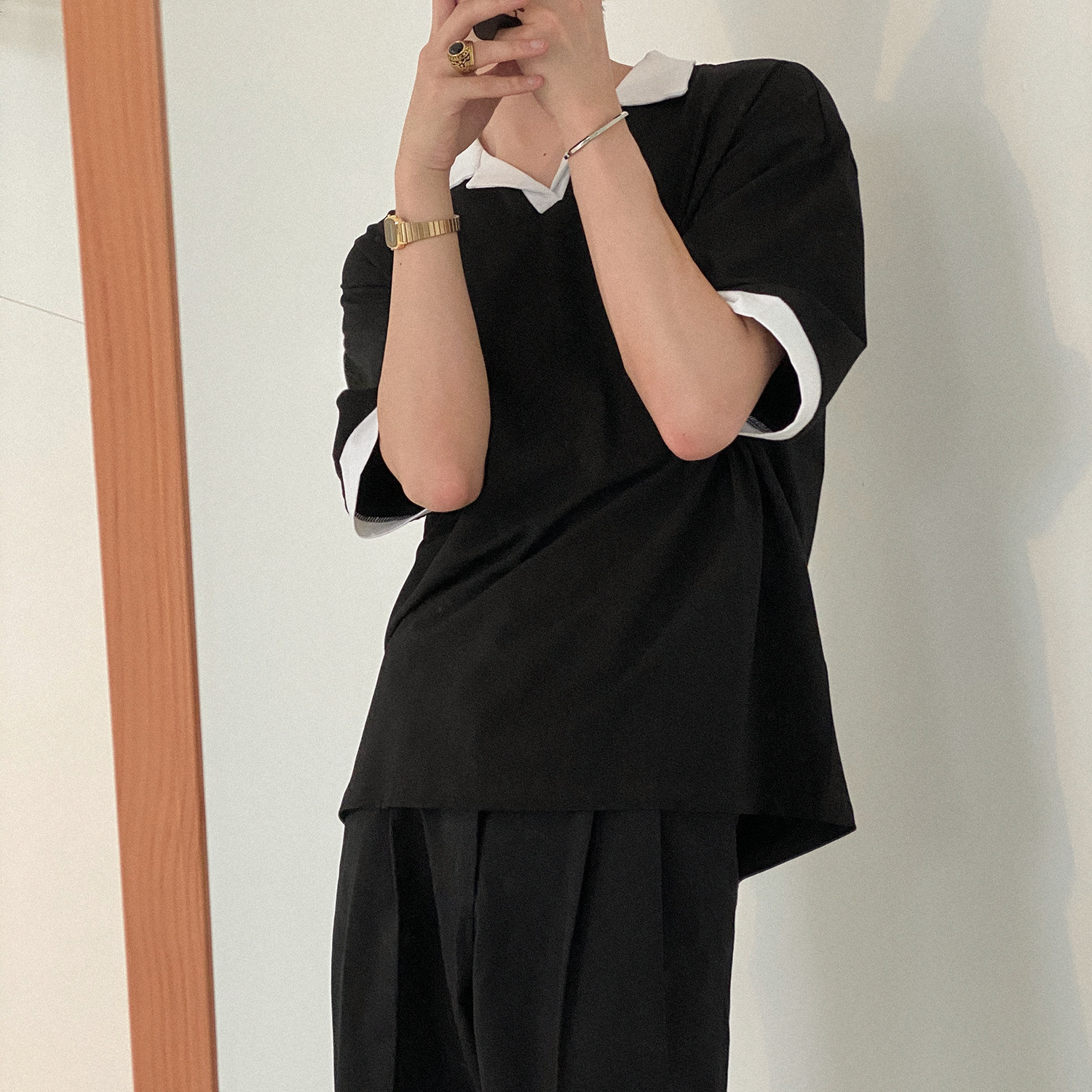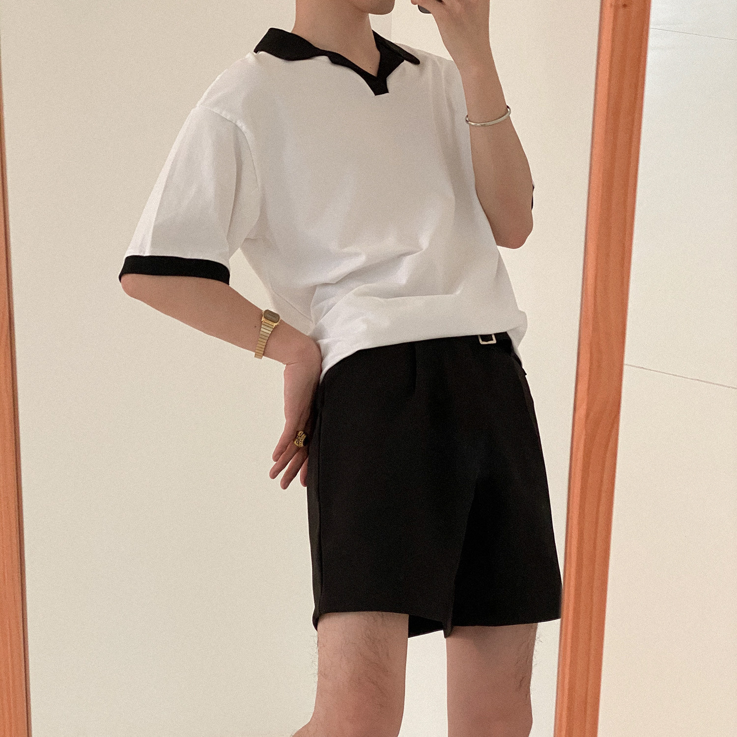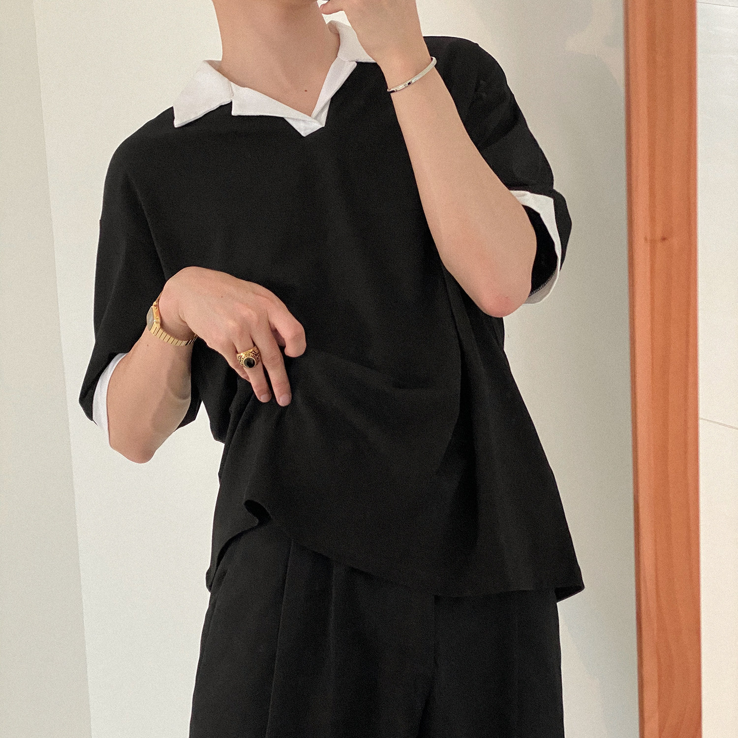 Летняя футболка polo, изысканная трендовая рубашка, короткий рукав, в корейском стиле