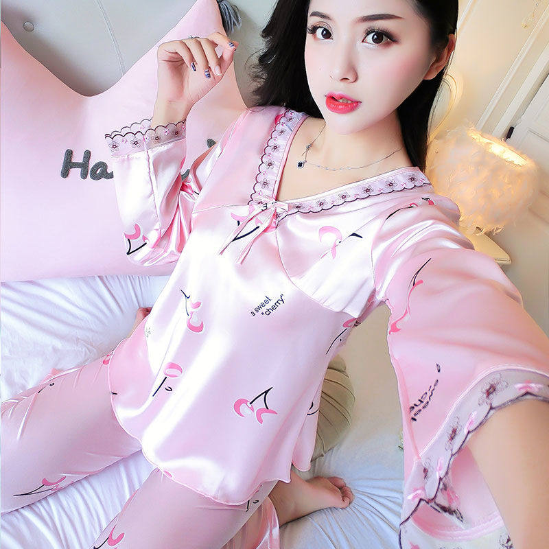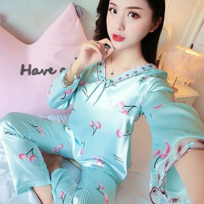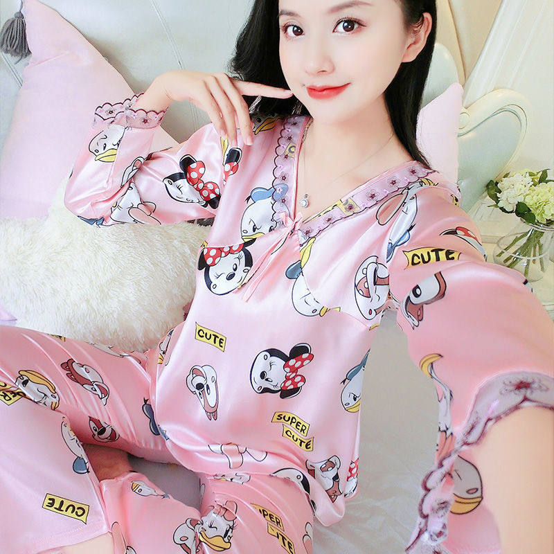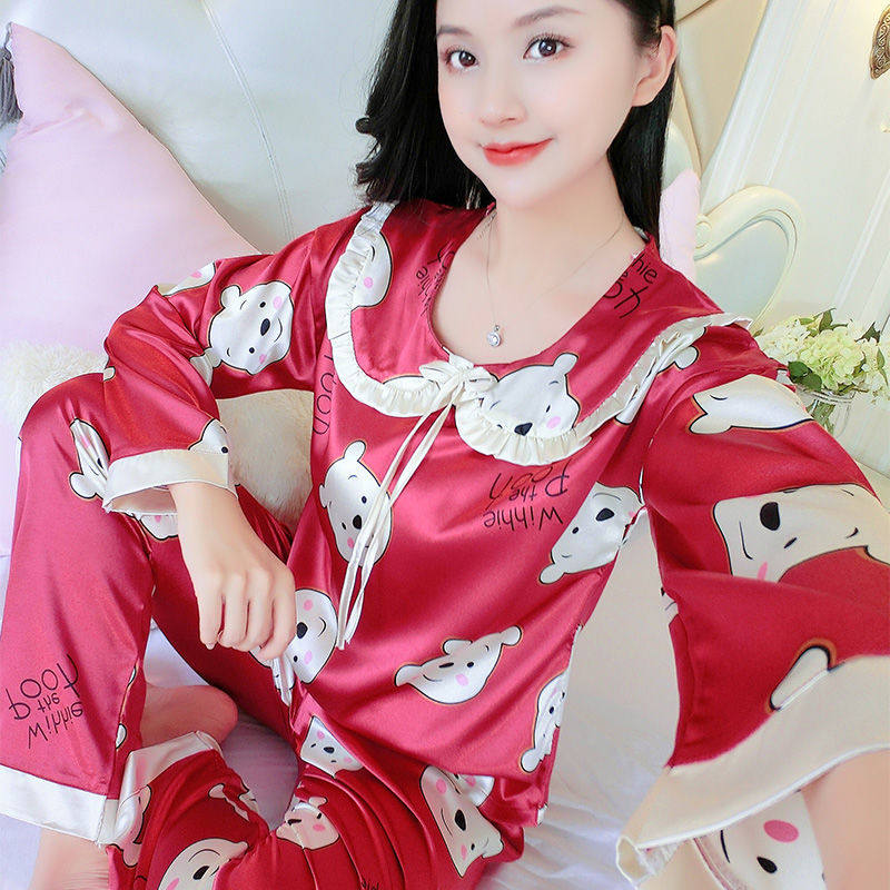 Шелковая осенняя пижама, тонкий сексуальный милый летний лонгслив, шелковый комплект, большой размер