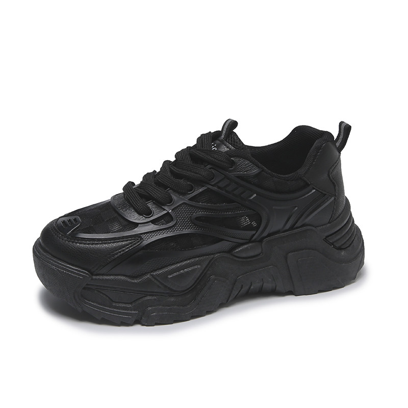 Все черные спортивные женские работы папа обувь лето чистое черное работа с толстым дном, студенты, дикий свет, бегущий маленькие черные туфли