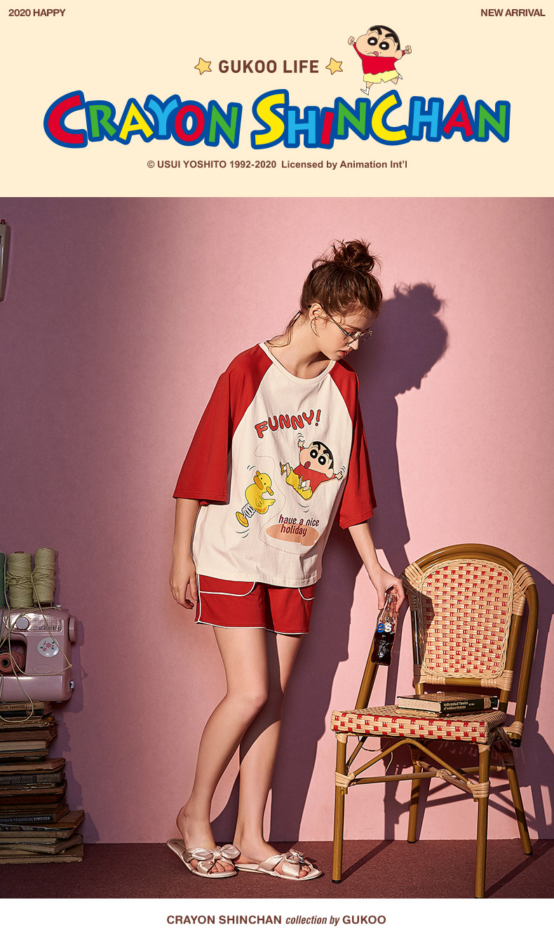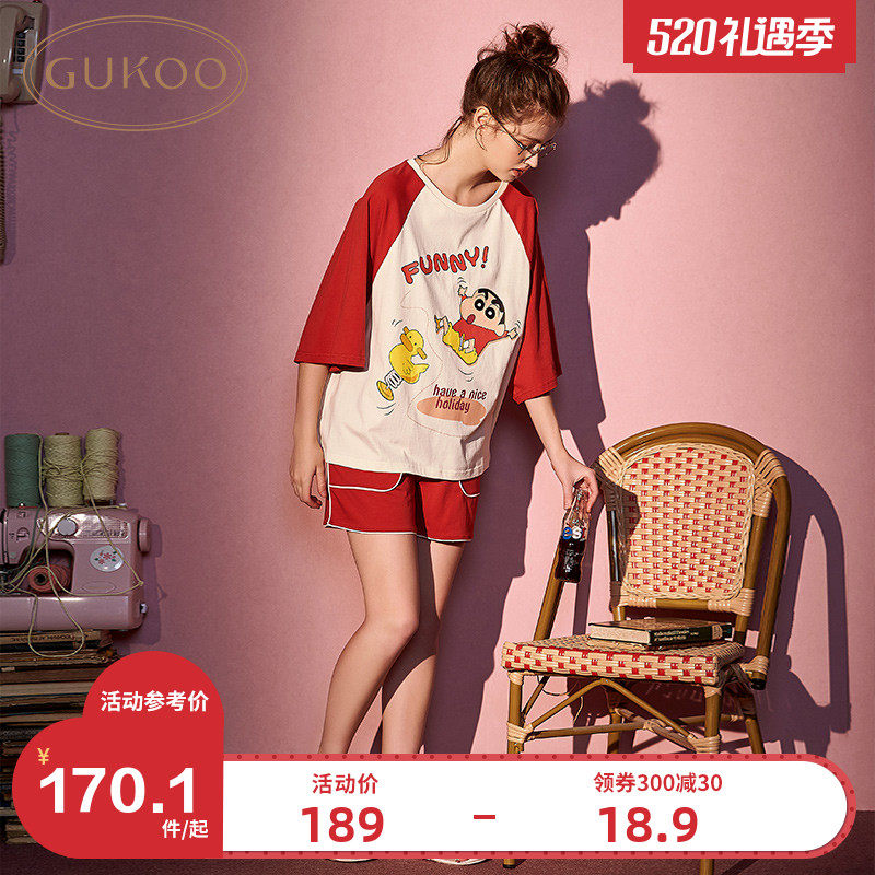 Gukoo/果壳 Мелки, летняя пижама, мультяшный милый комплект, короткий рукав