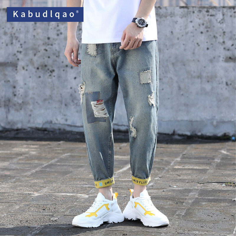 Летние трендовые джинсовые штаны, большой размер, в корейском стиле