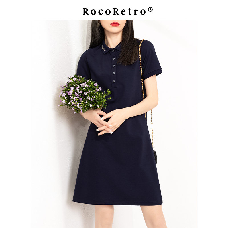 Ретро платье, приталенный корсет, летняя одежда для отдыха, платье-футболка, воротник поло, А-силуэт