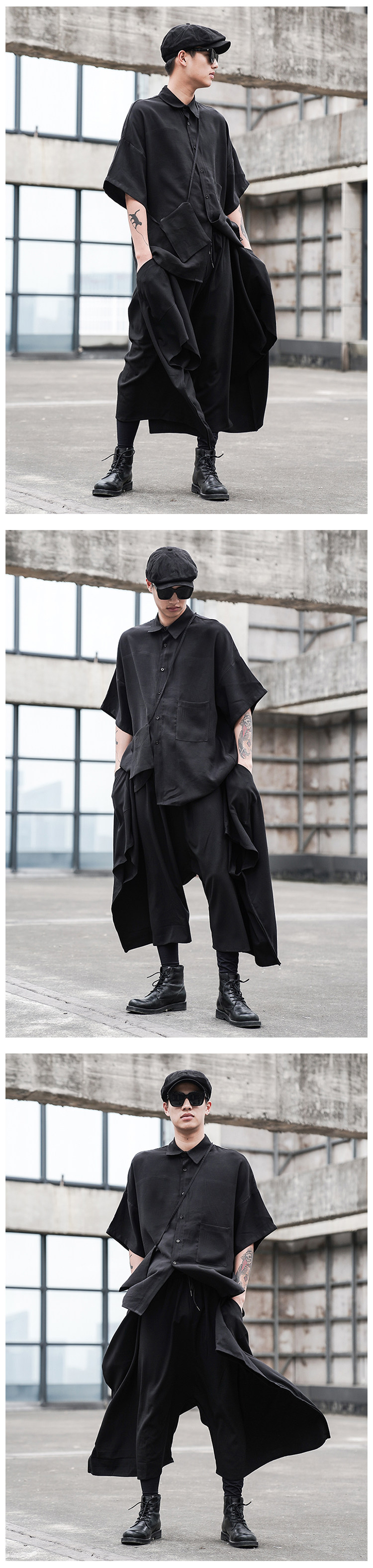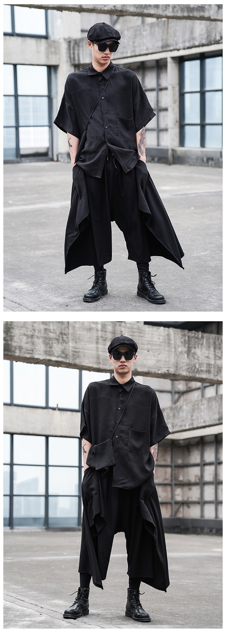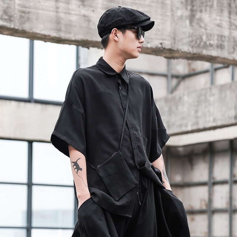 Оригинальная дизайнерская рубашка, небольшая сумка, стиль, свободный крой, короткий рукав