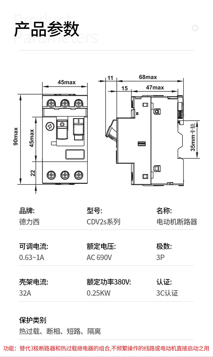 德力西 Madam Protector CDV2S-32 1,0,63 ~ 1A GV2-ME08C Двигатель NS2-25