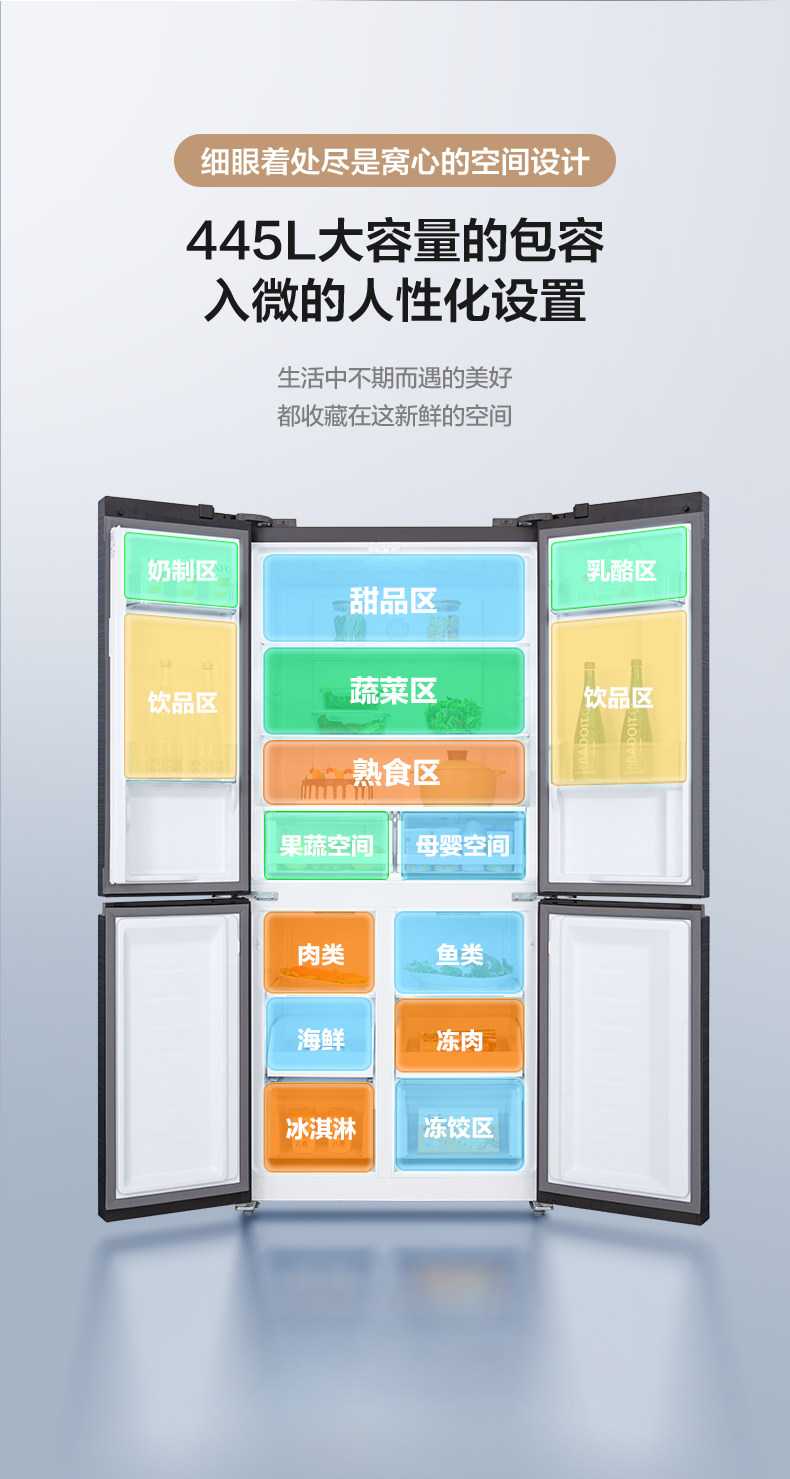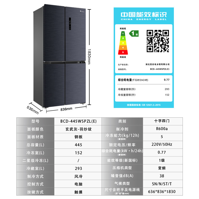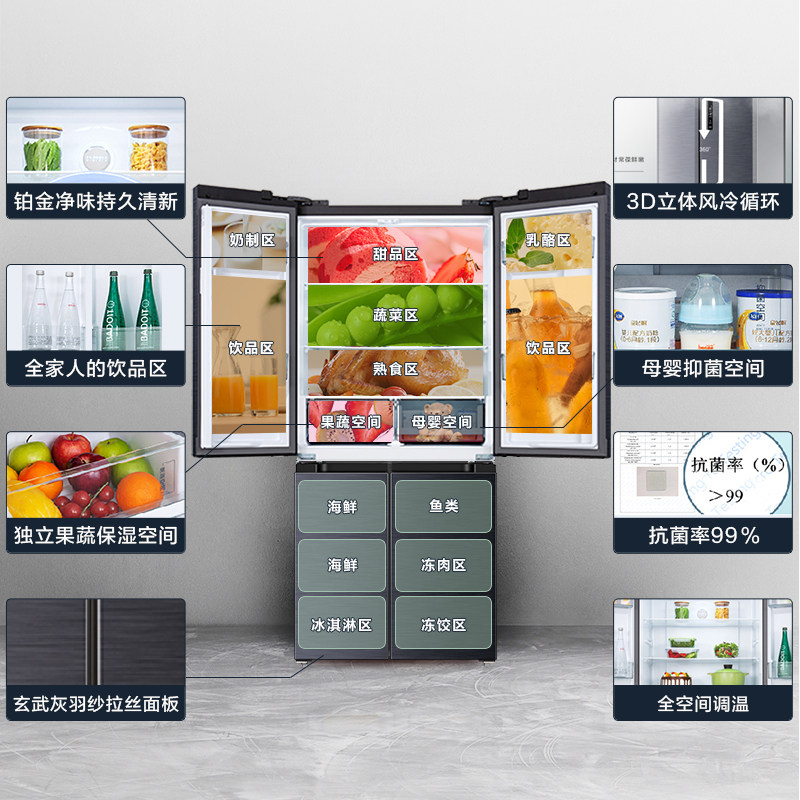 [Рекомендуется Wan Qian] Little Swan 445L Cross Plason Four Gate -Cold Выравнивание энергии Вертикальный холодильник