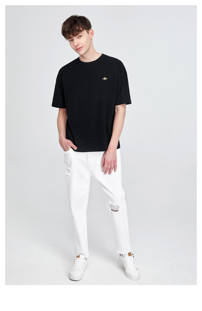 Летняя хлопковая трендовая футболка с коротким рукавом, с вышивкой, свободный крой, в корейском стиле