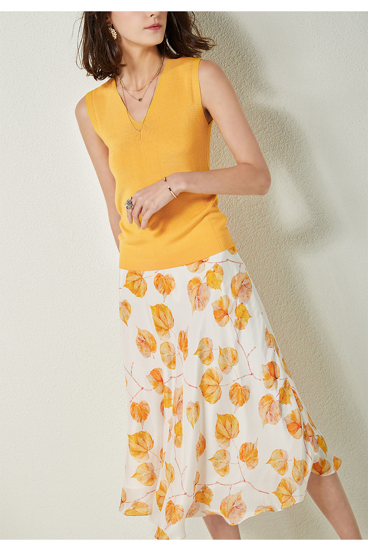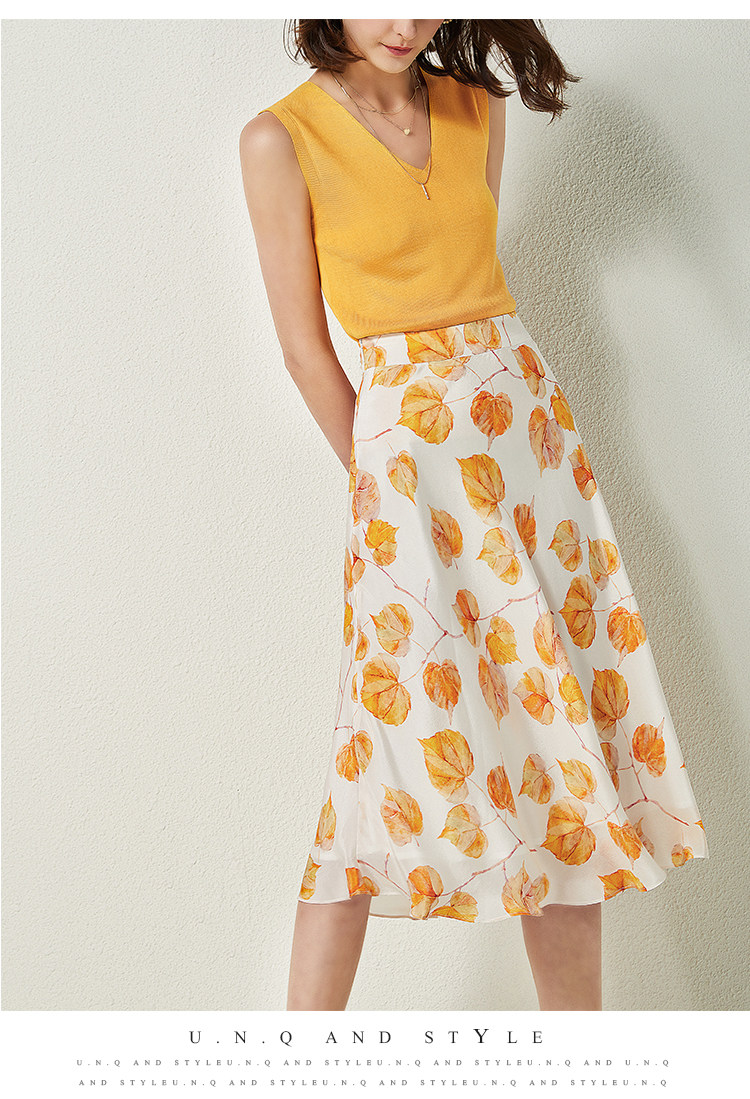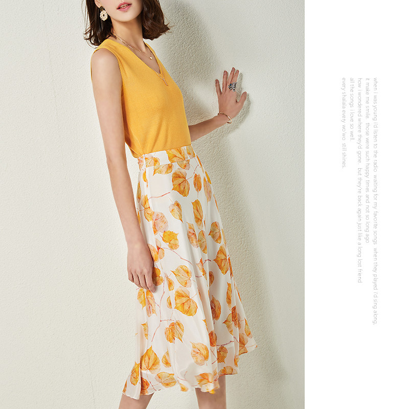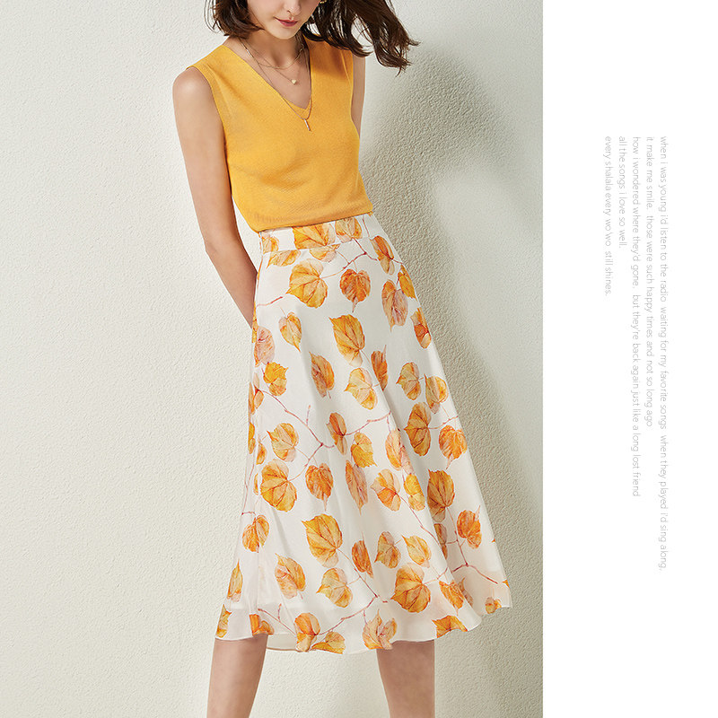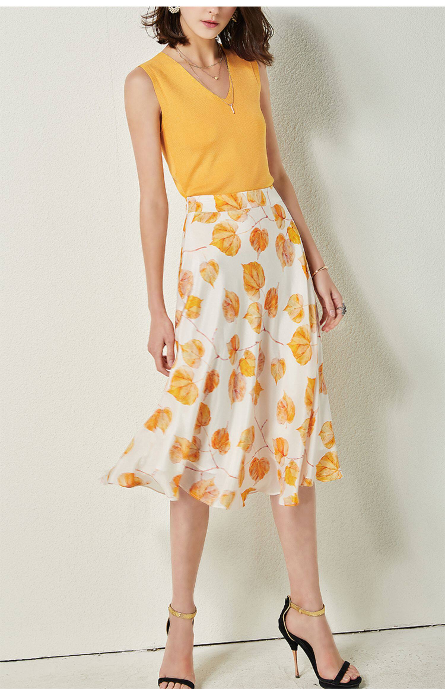 Свежая шелковая юбка, высокая талия