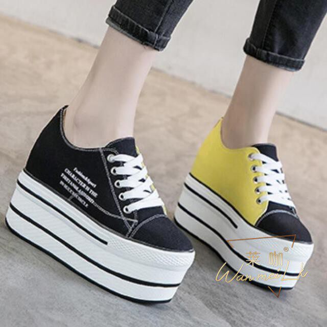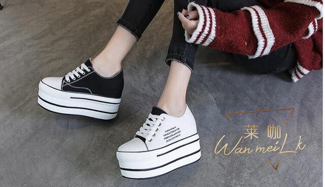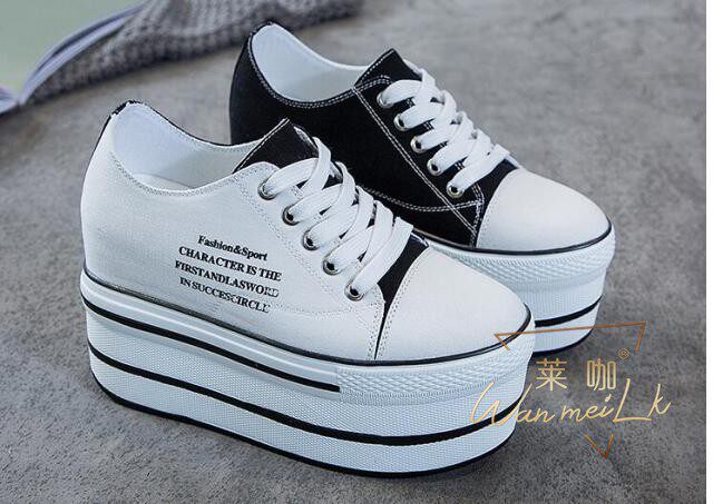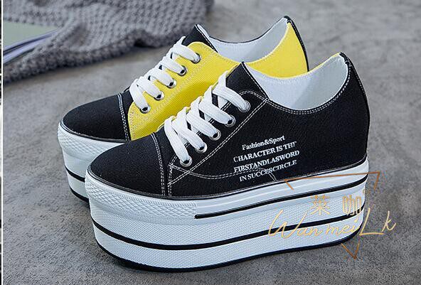 Невидимое увеличение в 12 см удобных холста с низким содержанием полосы -Thick -Sottomed Fashion Универсальная женская обувь Lahho 7352