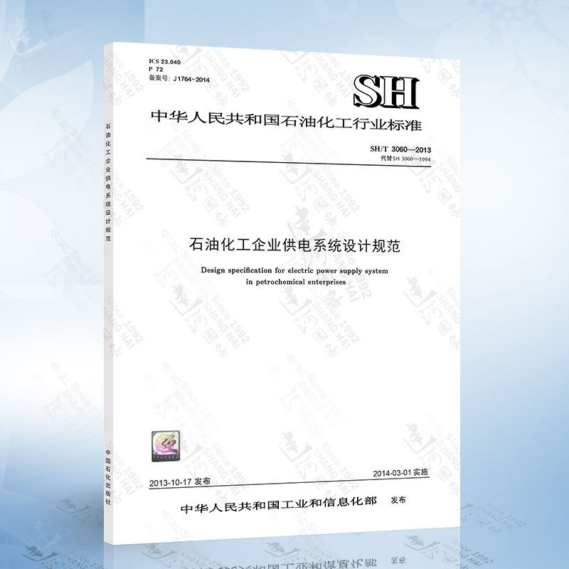 SH/T 3060-2013 Стандарт проектирования системы энергоснабжения нефтяной химической предприятия для стандартов нефтяной промышленности.